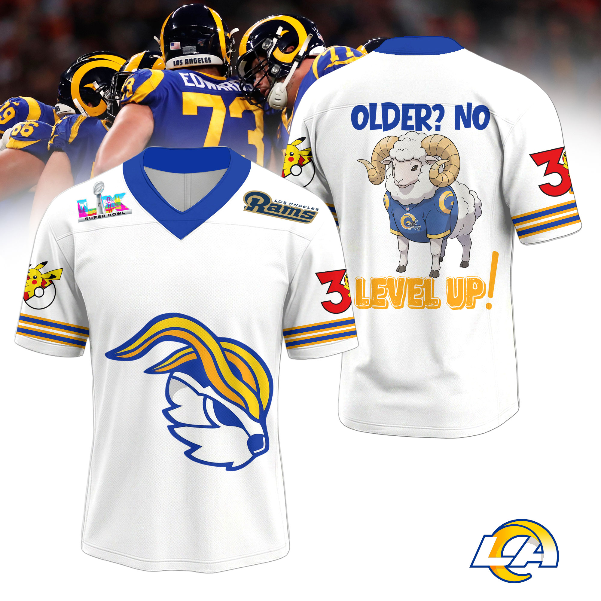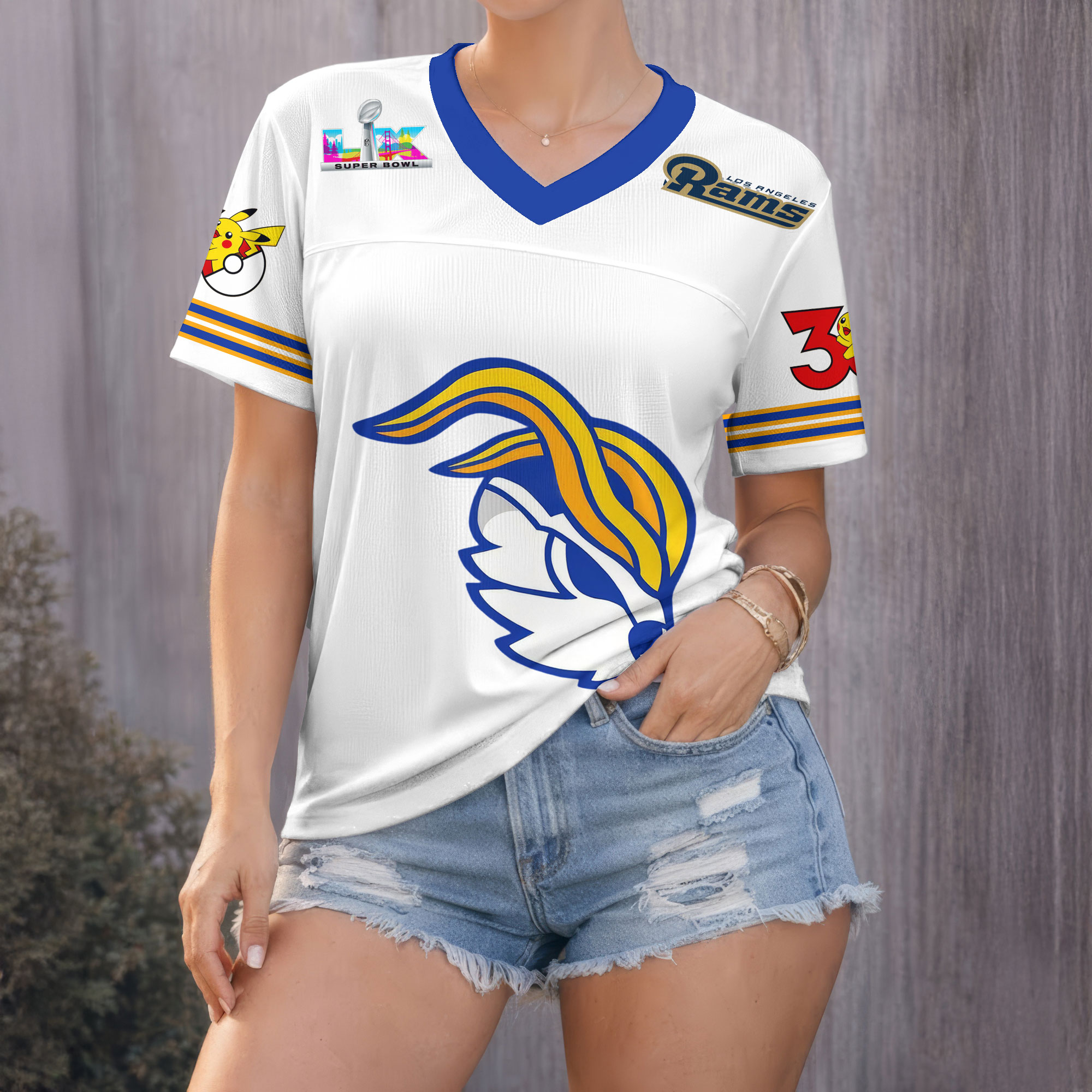 Los Angeles Rams | Premium Super Bowl x Pokemon 30th Anniversary V-neck Baseball Jersey HY