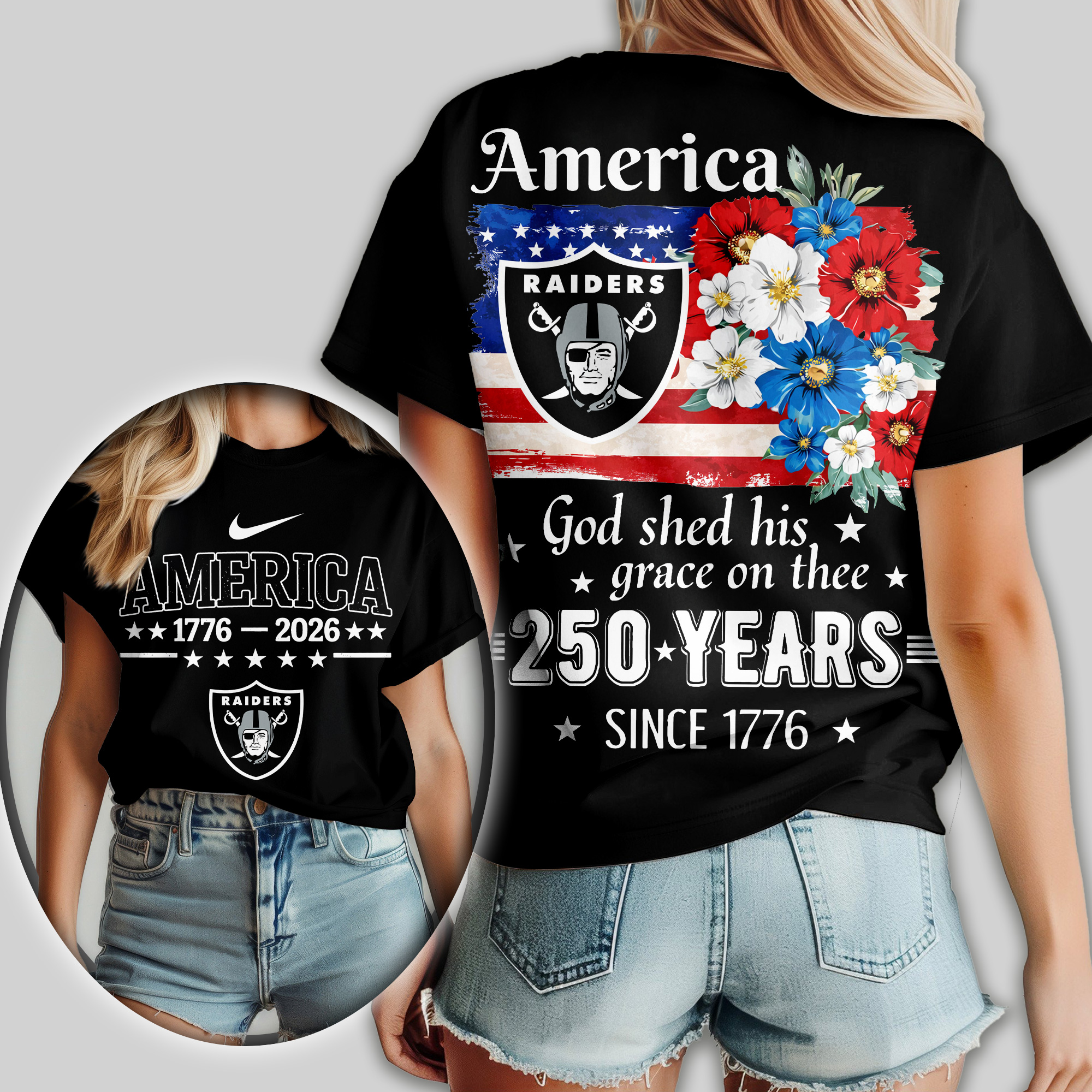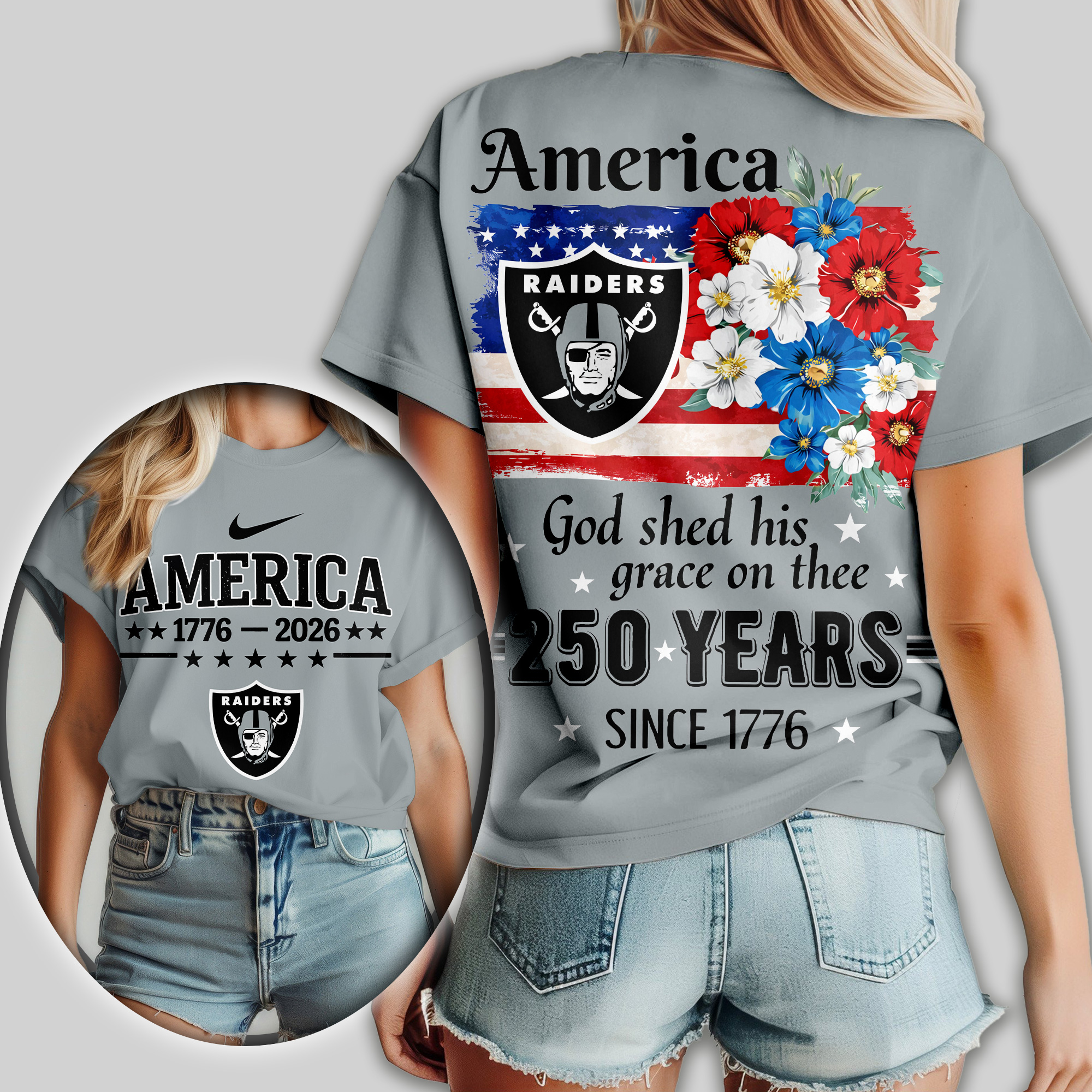 Las Vegas Raiders | Premium NFL America God Shed His Grace On Thee Women Shirt