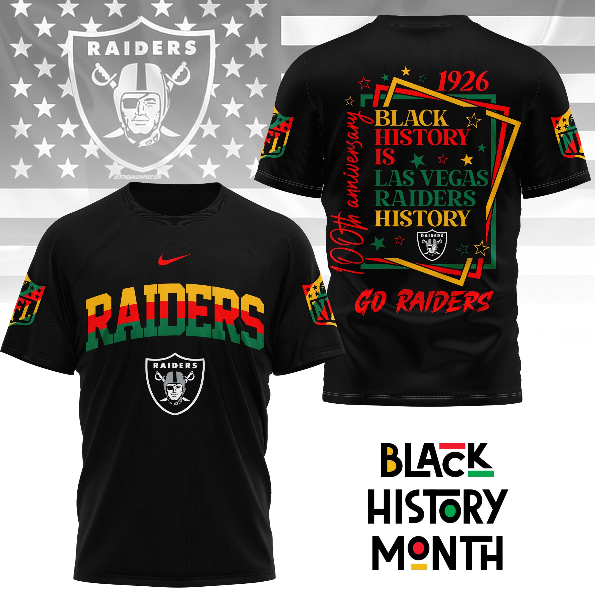 Las Vegas Raiders | Premium NFL Black History Month 3D Shirt