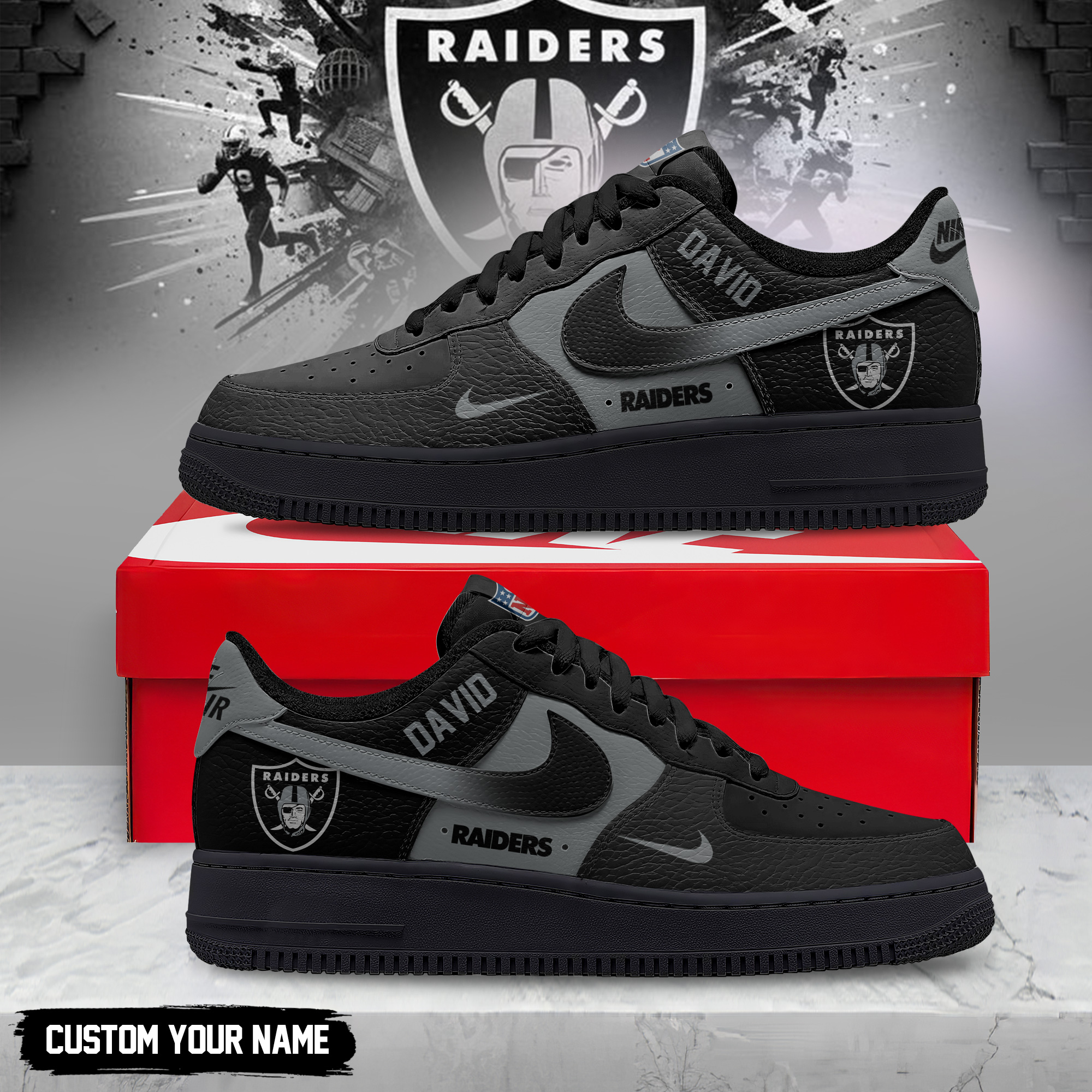 Las Vegas Raiders | Premium NFL Black in Black AF1