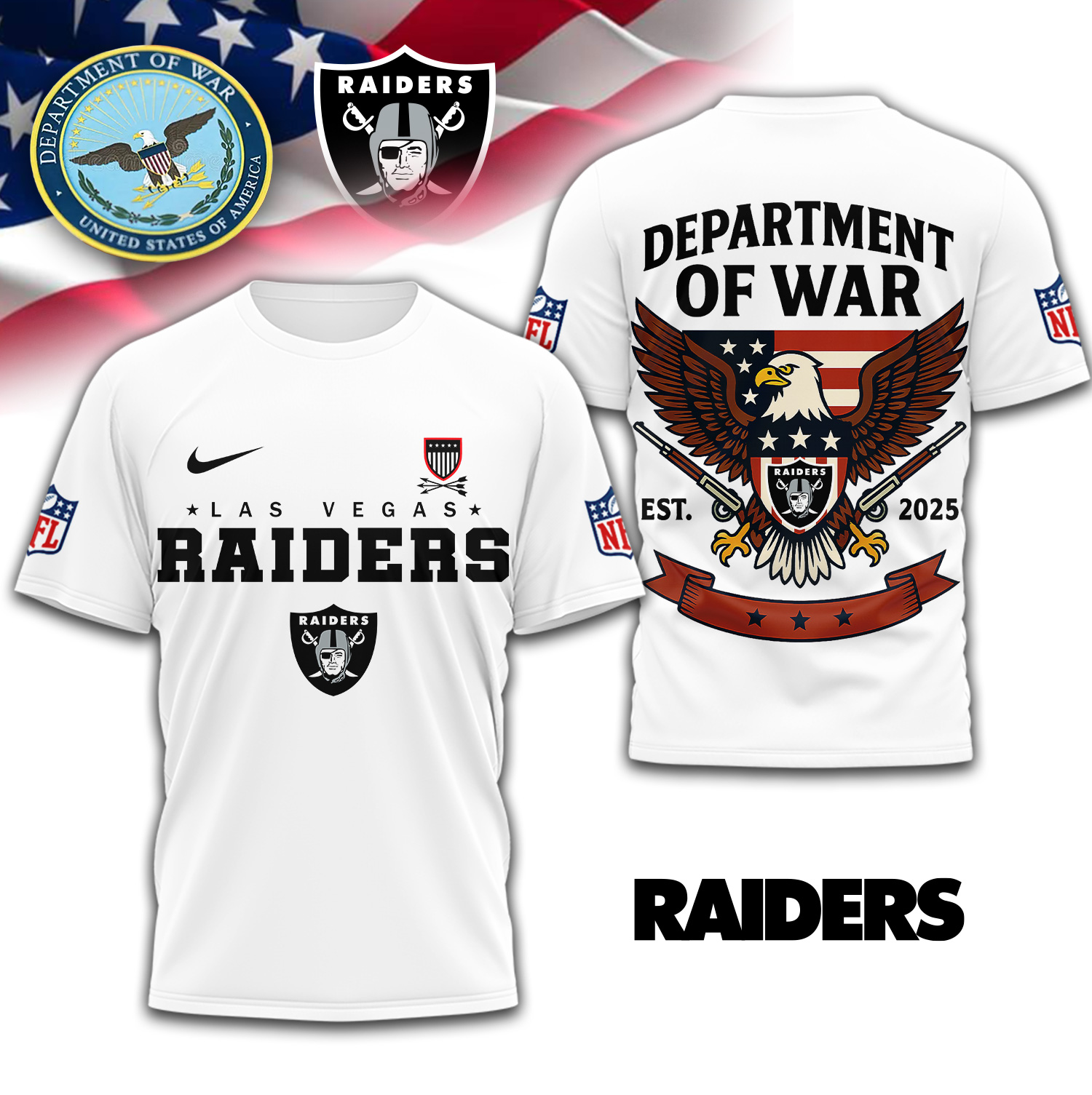 Las Vegas Raiders | Premium NFL Department Of War 3D Shirt