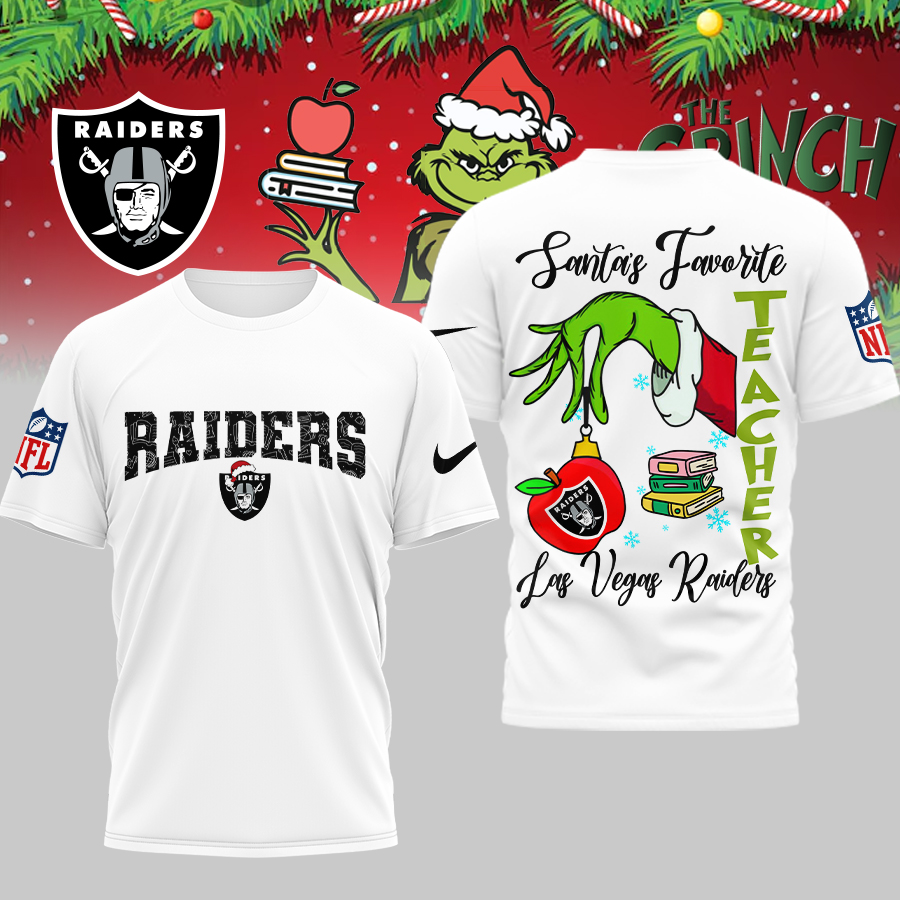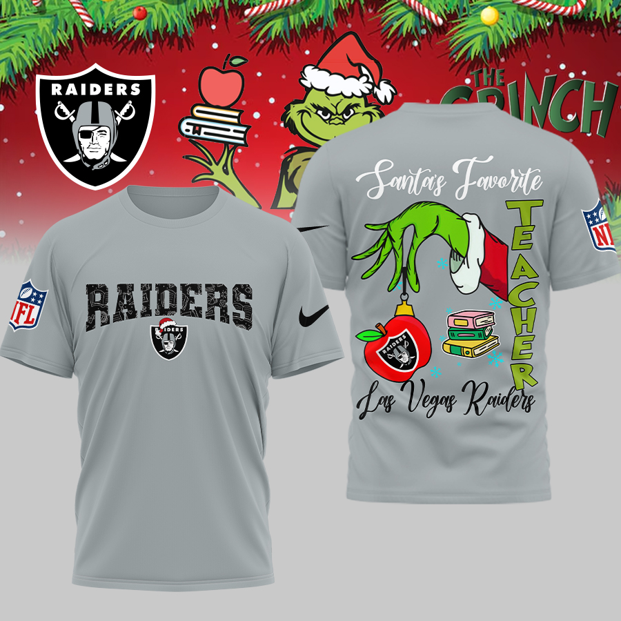 Las Vegas Raiders | Premium NFL Festive Grinch Teacher 3D Shirt