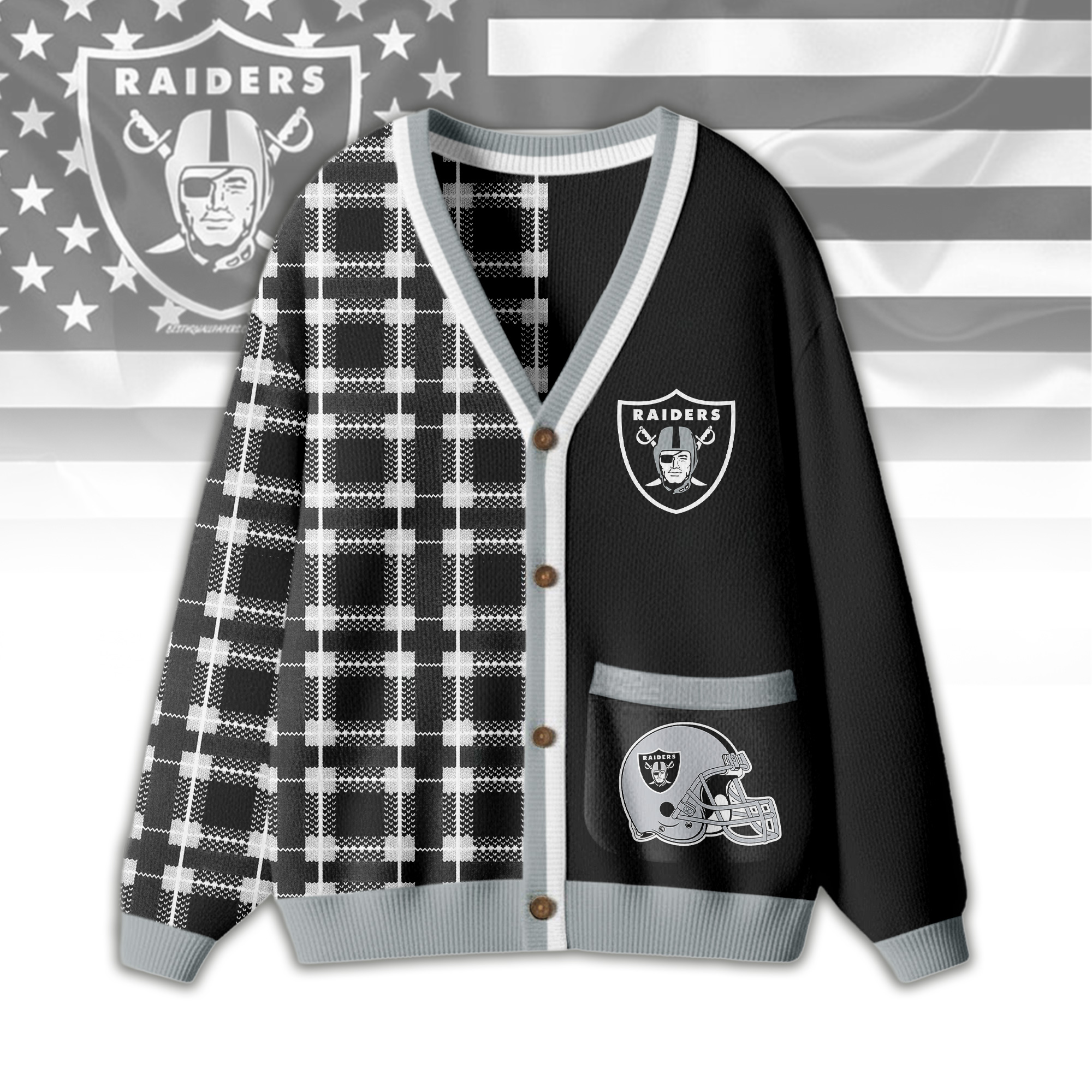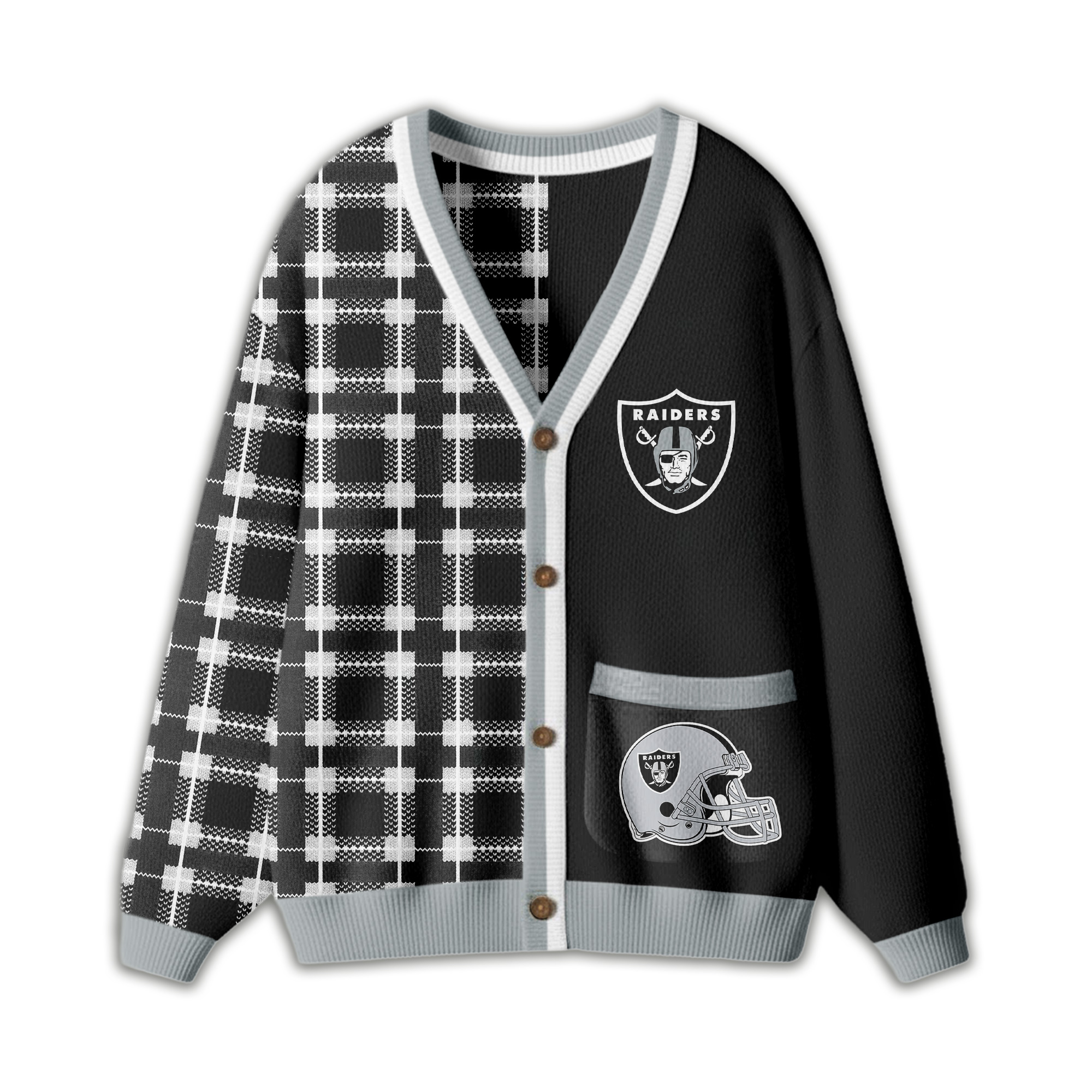 Las Vegas Raiders | Premium NFL Game Day Patchwork Cardigan with Printed Pocket Design