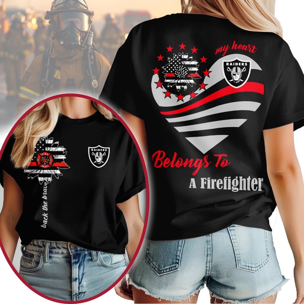 Las Vegas Raiders | Premium NFL My Heart Belongs To A Firefighter T-shirt