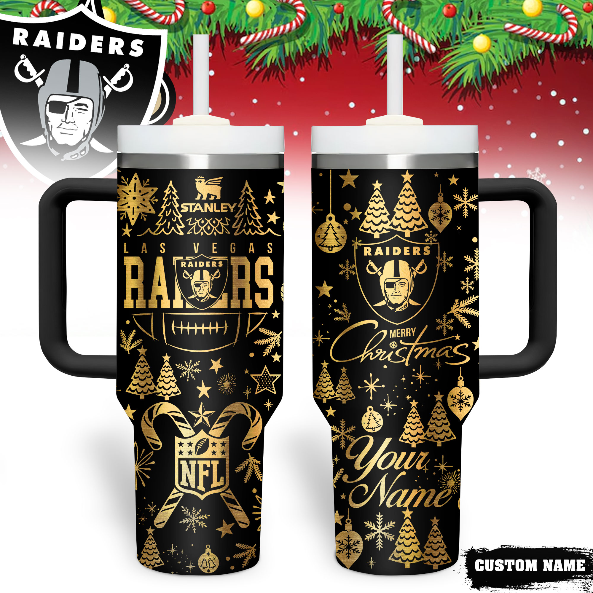 Las Vegas Raiders | Premium NFL Personalized Holiday Gold Tumbler 40oz