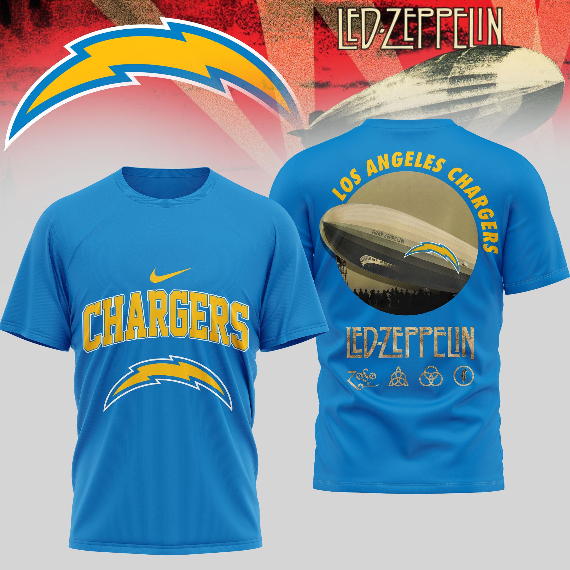 Los Angeles Chargers | Premium NFL Led Zeppelin 3D Shirt