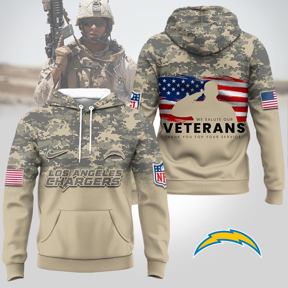 Los Angeles Chargers | Premium NFL Thank You For Your Service 3D Hoodie