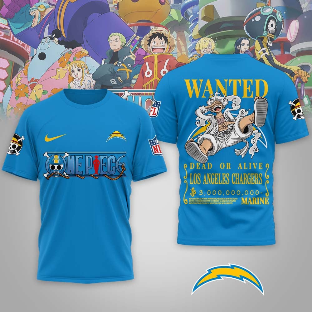 Los Angeles Chargers | Premium NFL Wanted Monkey D Luffy 3D Shirt