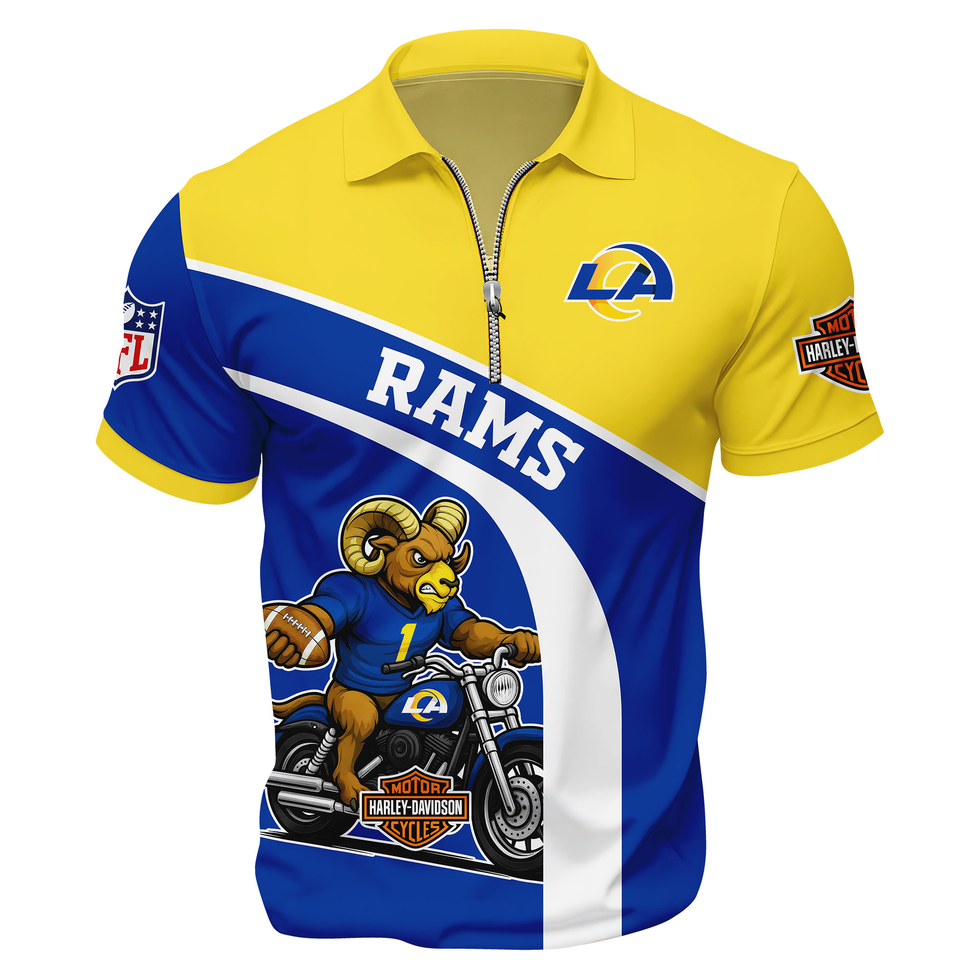 Los Angeles Rams | Premium NFL Harley-Davidson Polo With Zipper Shirt