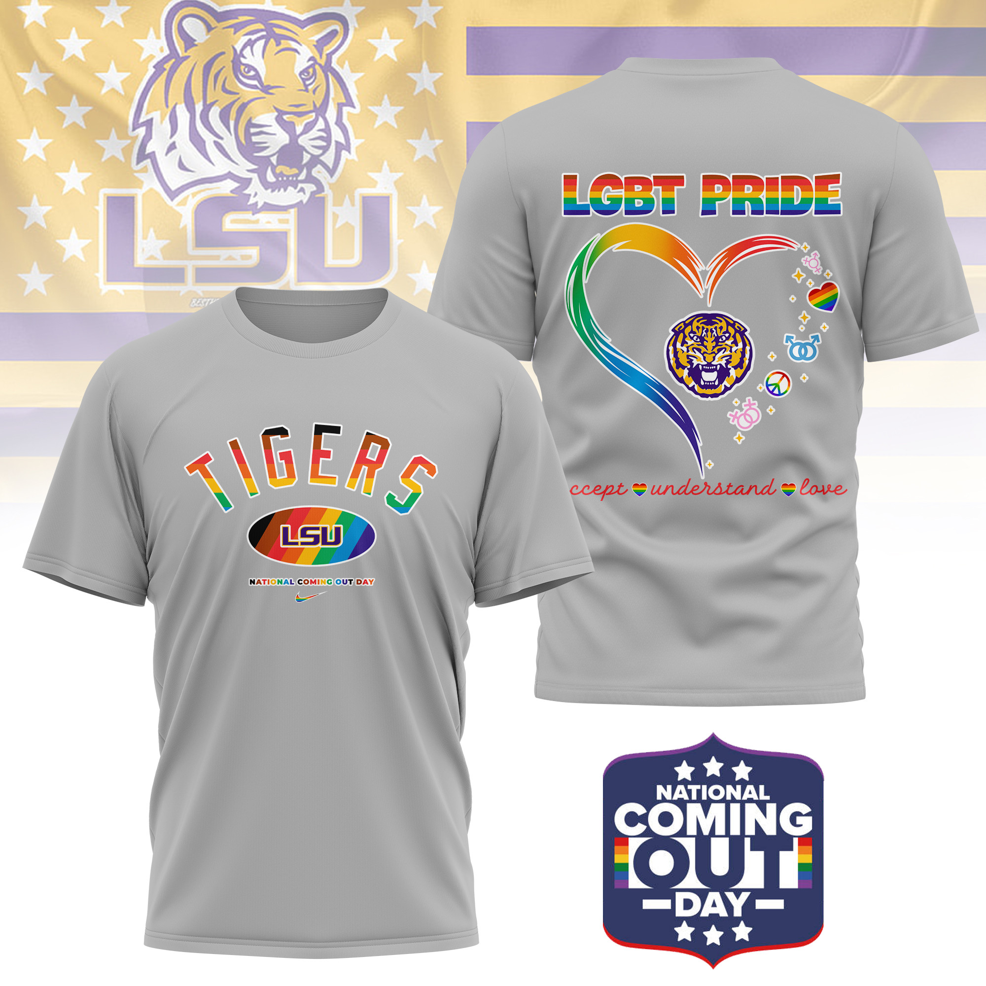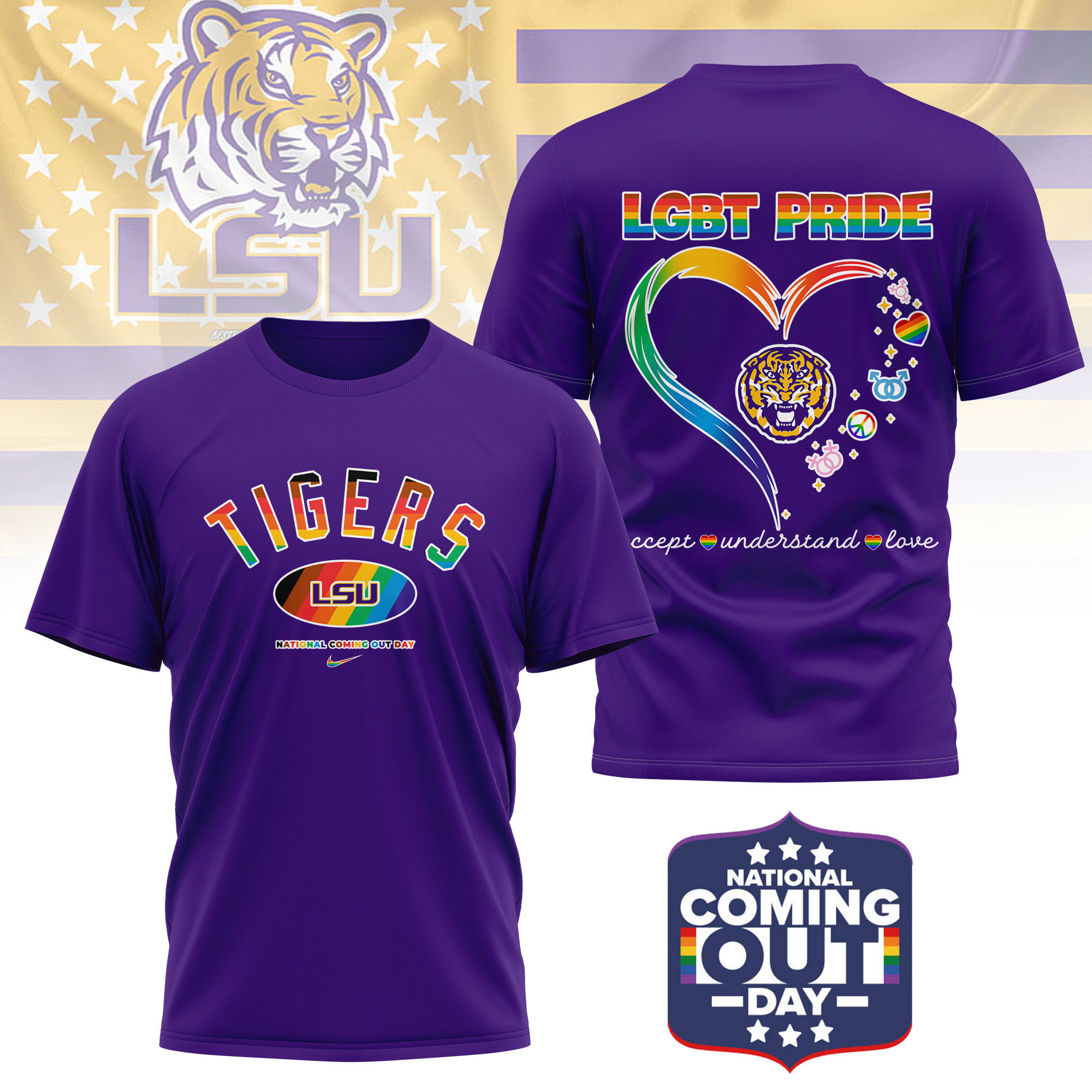 LSU Tigers | Premium NCAA National Coming Out Day 3D Shirt
