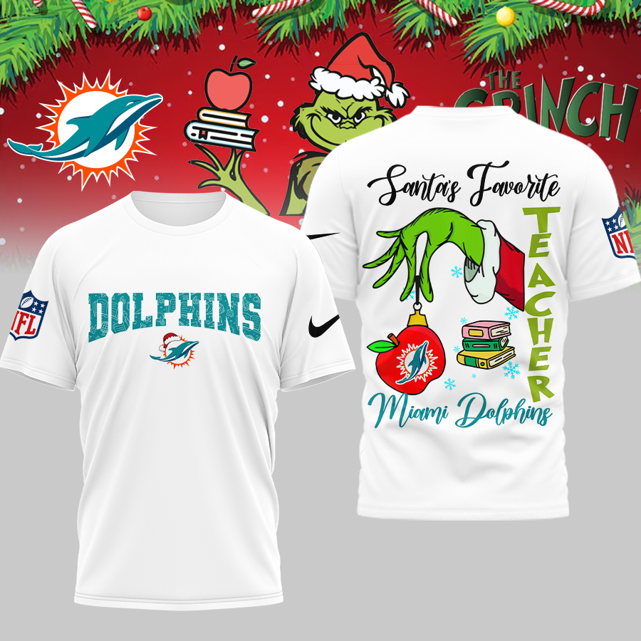 Miami Dolphins | Premium NFL Festive Grinch Teacher 3D Shirt