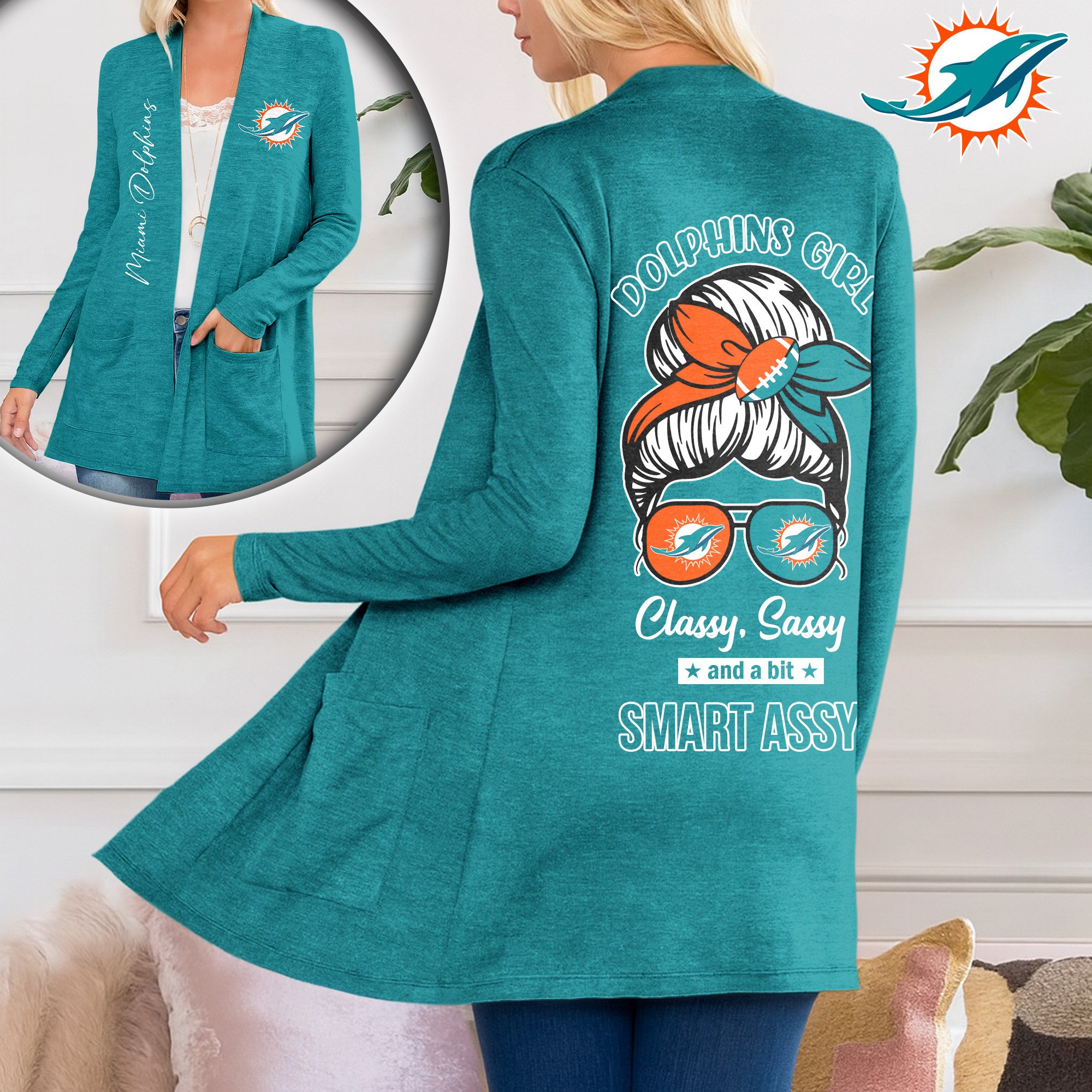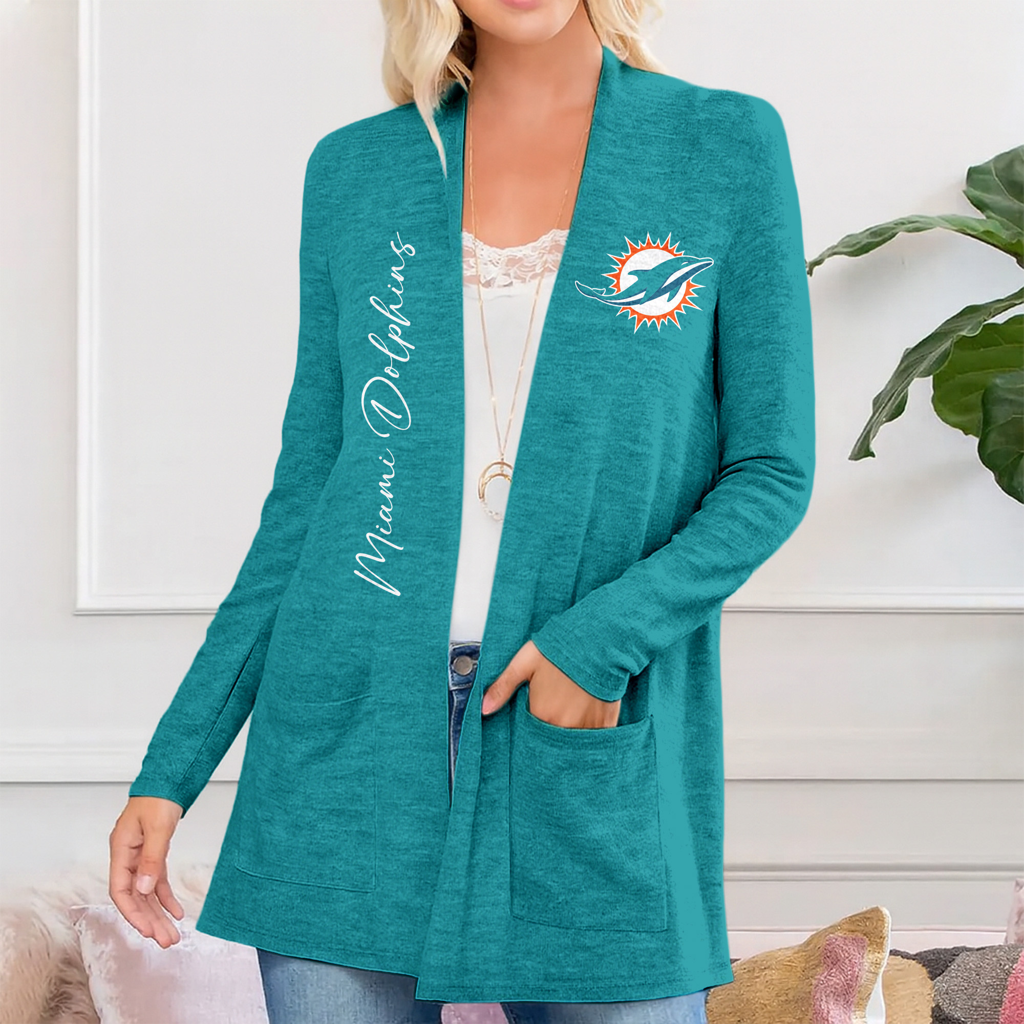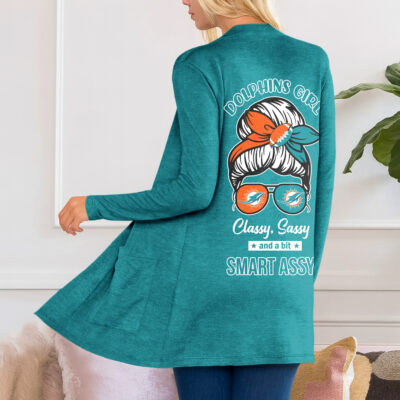 Miami Dolphins | Premium NFL Football Girl Women Path Pocket Cardigan