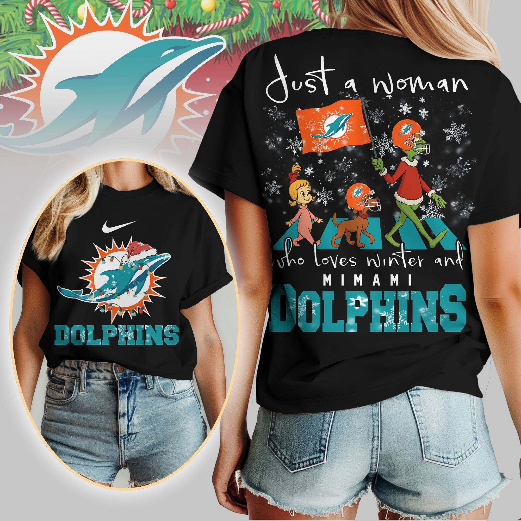 Miami Dolphins | Premium NFL Just A Woman Who Loves Winter 3D Shirt
