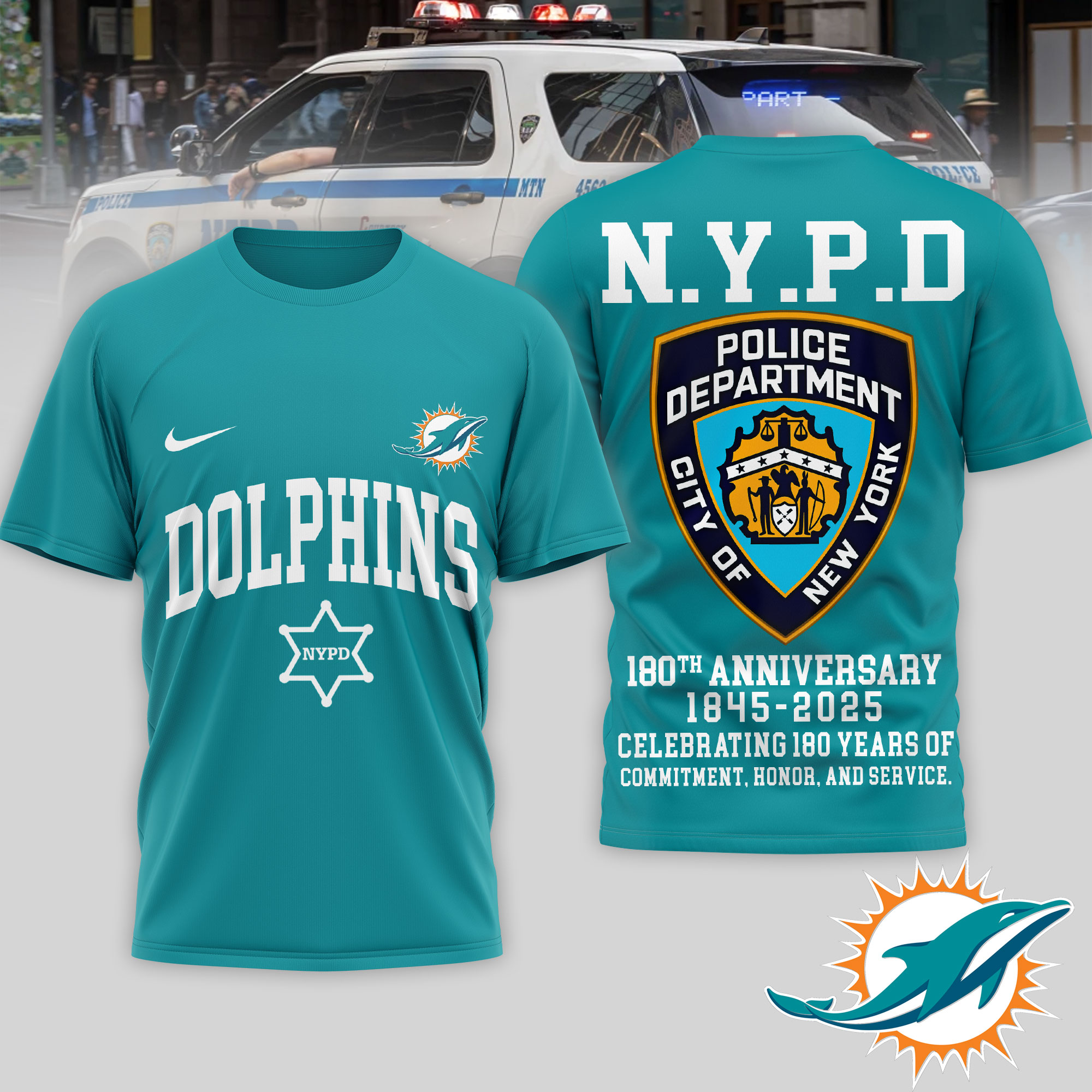 Miami Dolphins | Premium NFL N.Y.P.D 180th Anniversary 3D Shirt