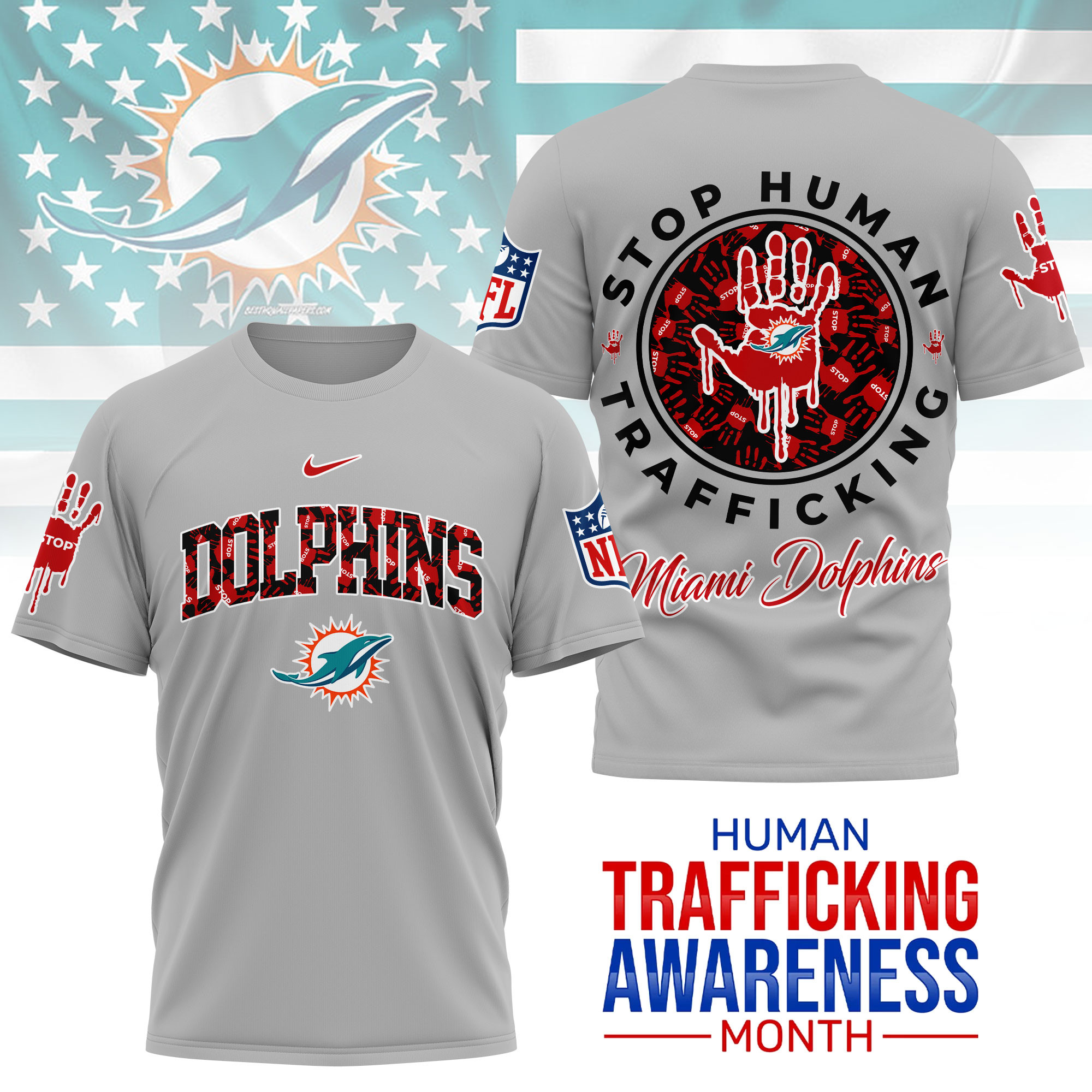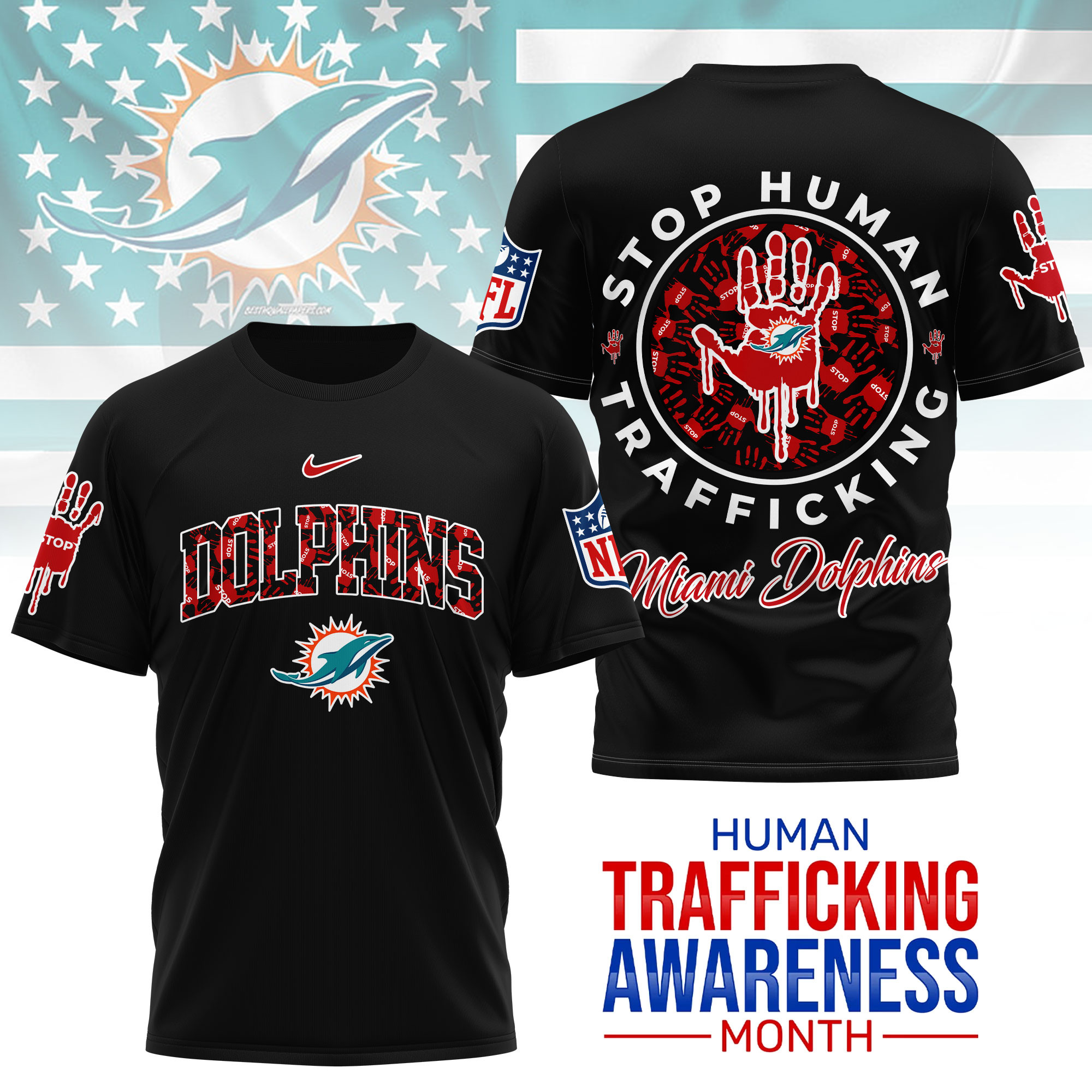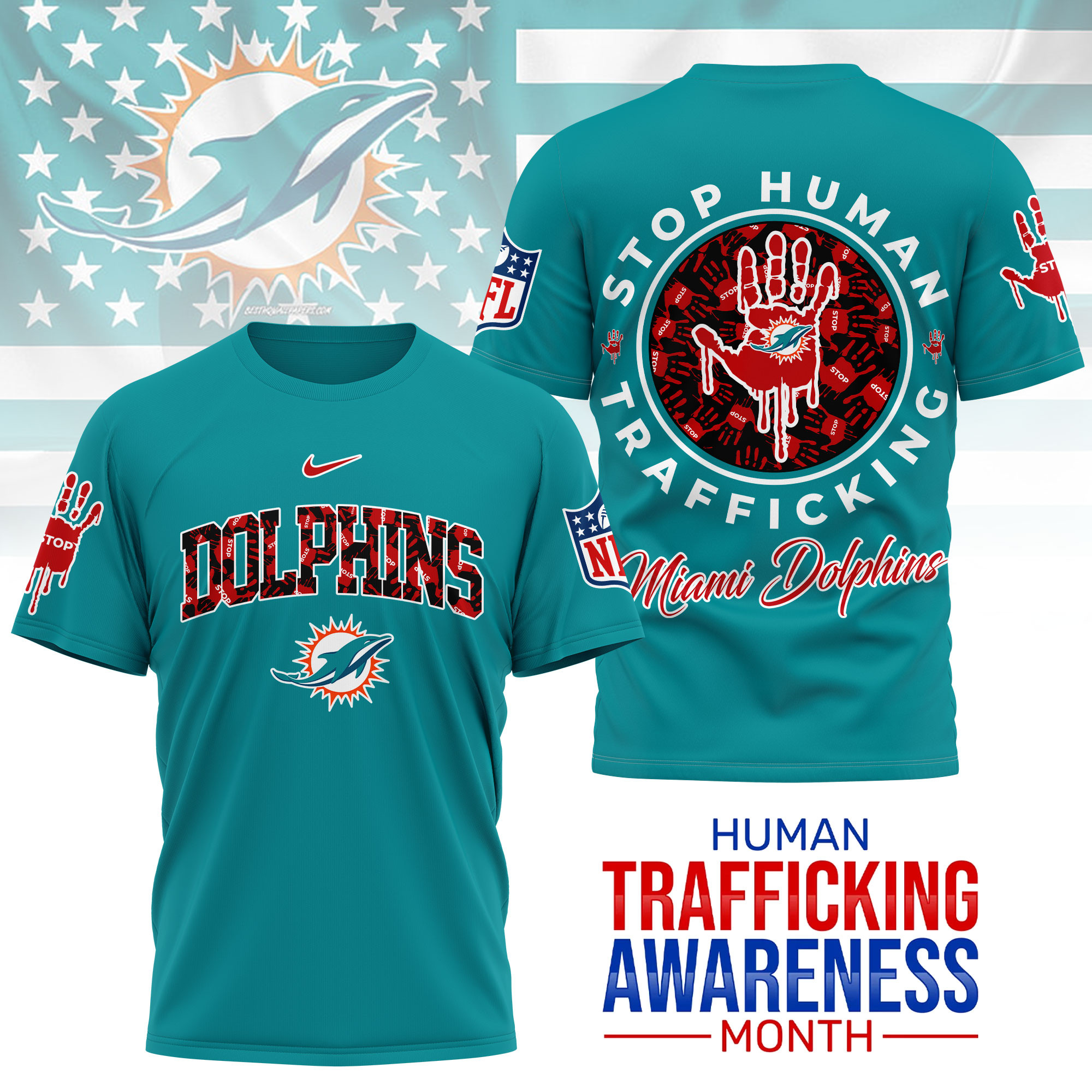 Miami Dolphins | Premium NFL Slavery and Human Trafficking Prevention 3D Shirt