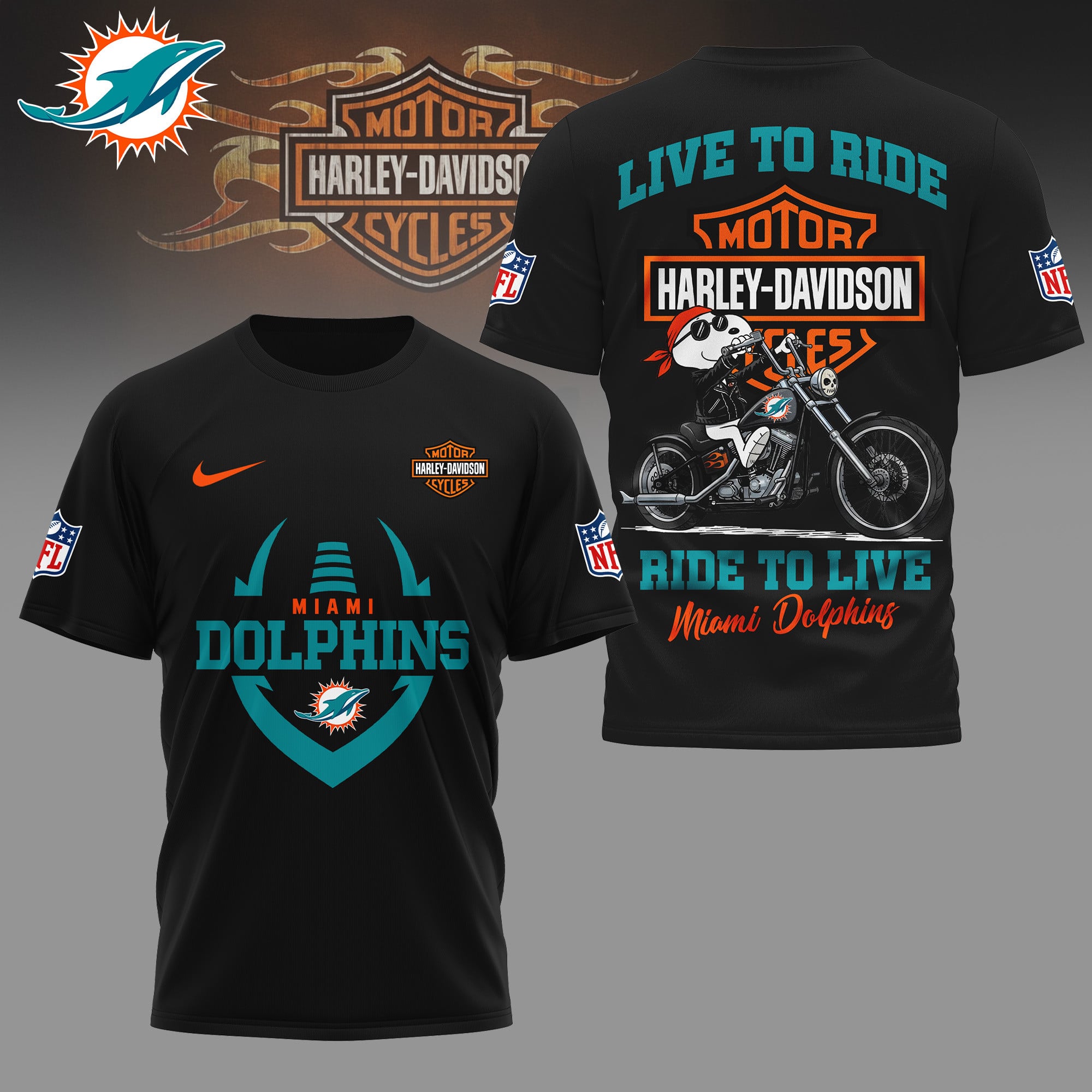 Miami Dolphins | Premium NFL Snoopy Harley Davidson 3D Shirt