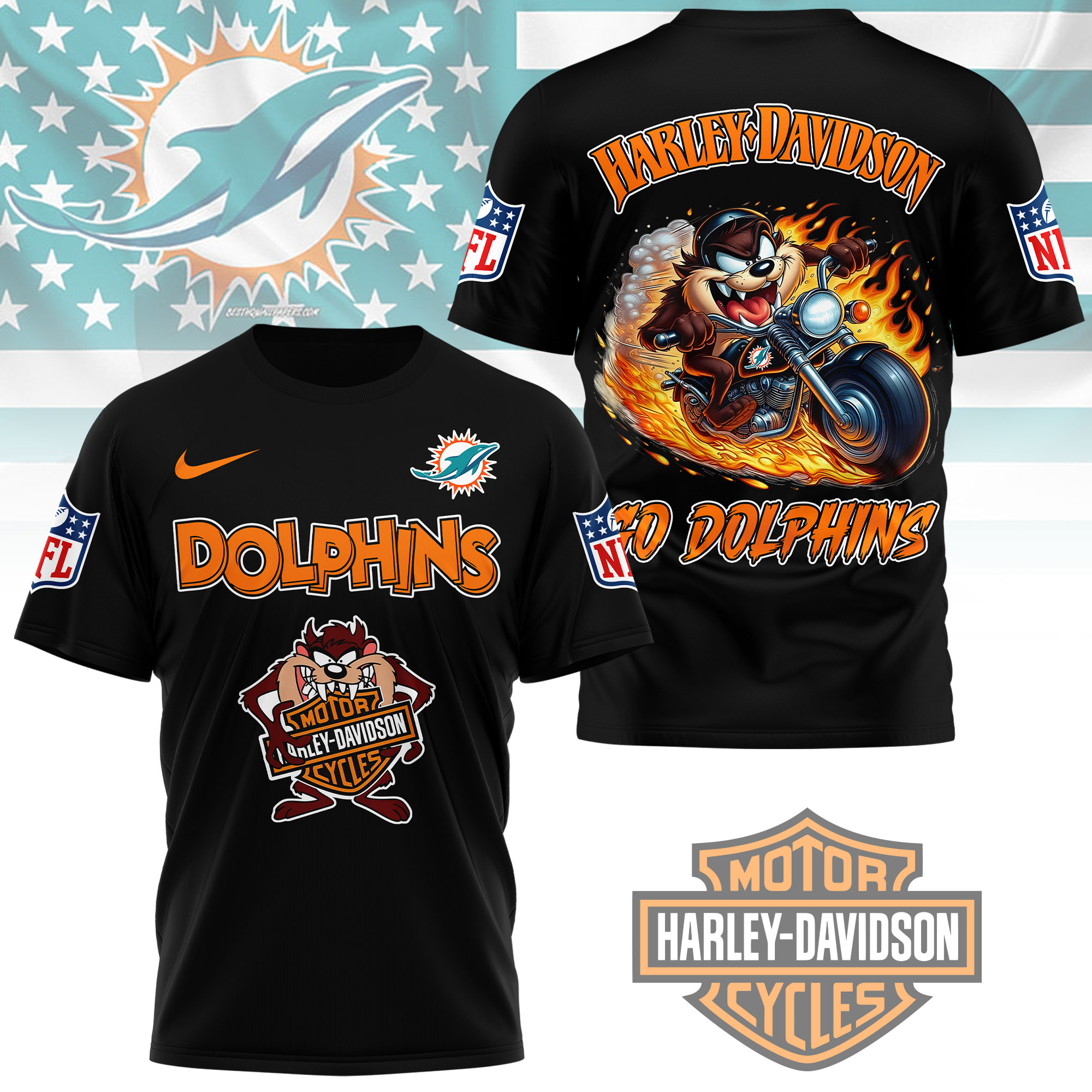 Miami Dolphins | Premium NFL Taz Looney Tunes 3D Shirt