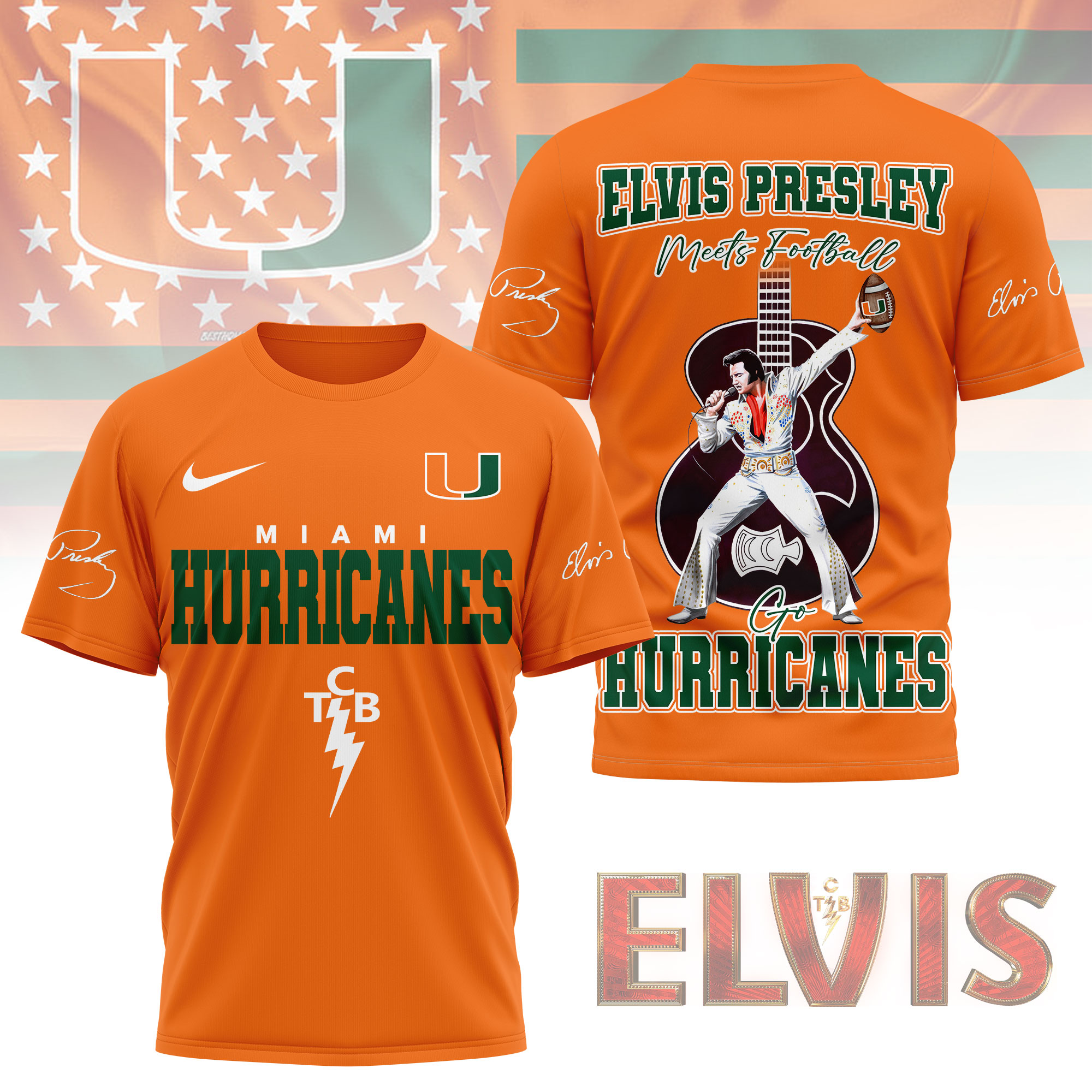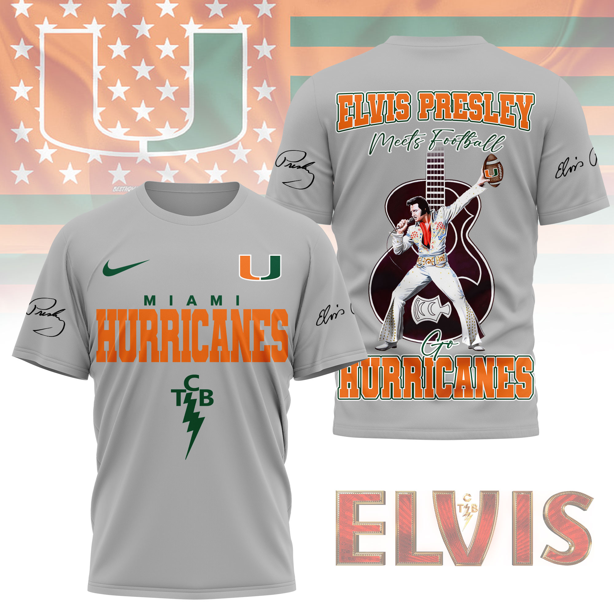 Miami Hurricanes | Premium NCAA Elvis Presley Fan 3D Shirt