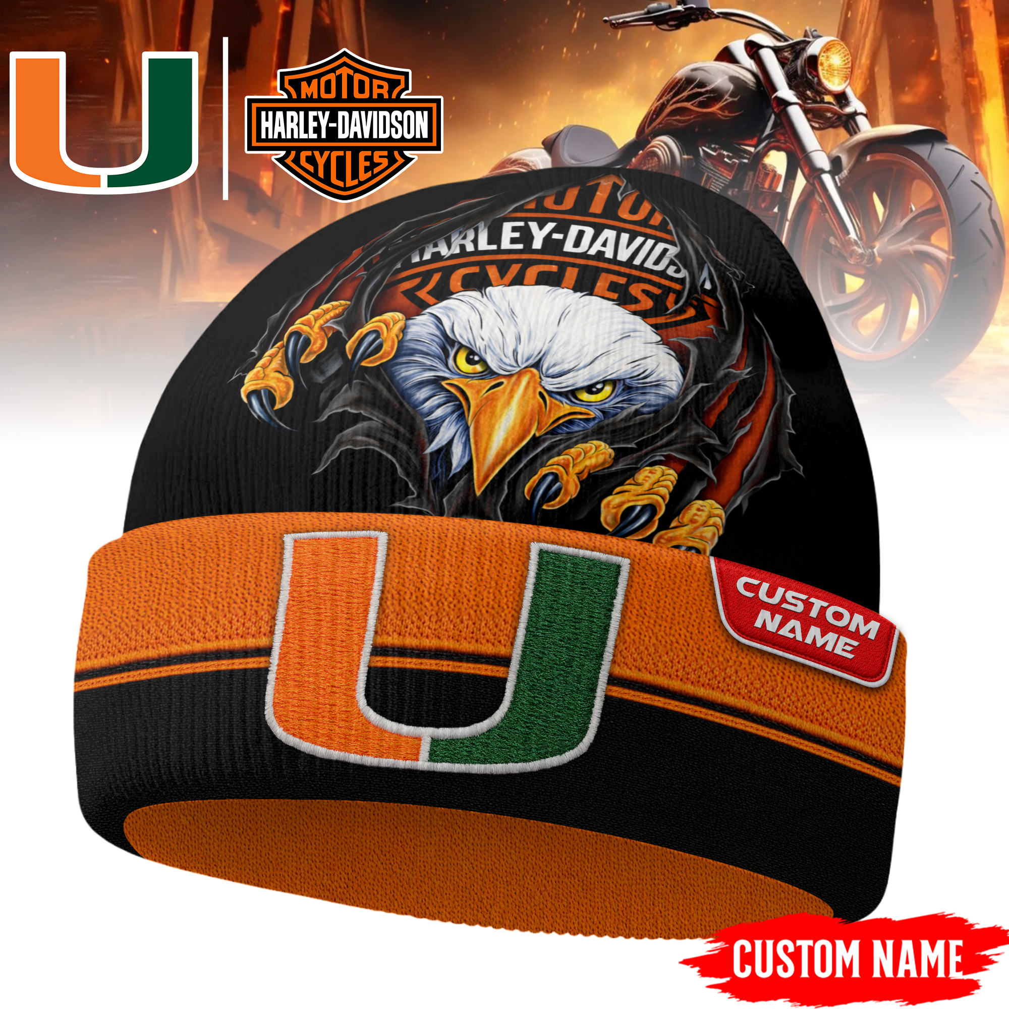 Categories: Miami Hurricanes, NCAA, Premium NCAA Harley Davidson Beanie Hat TD