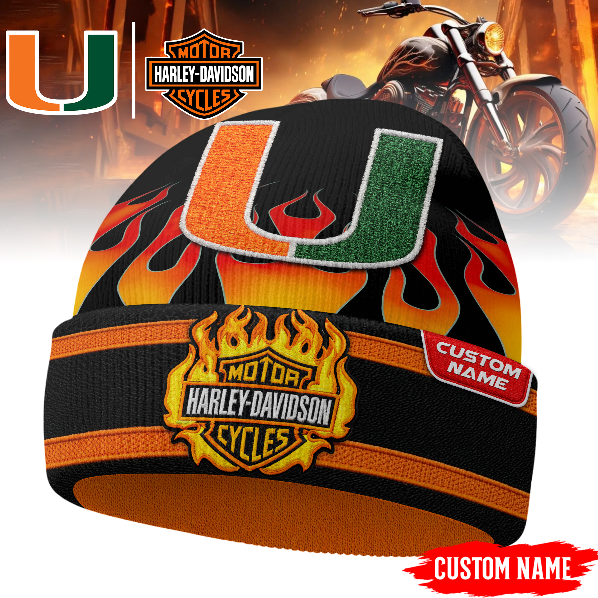 Miami Hurricanes | Premium NCAA Harley Davidson Beanie Hat