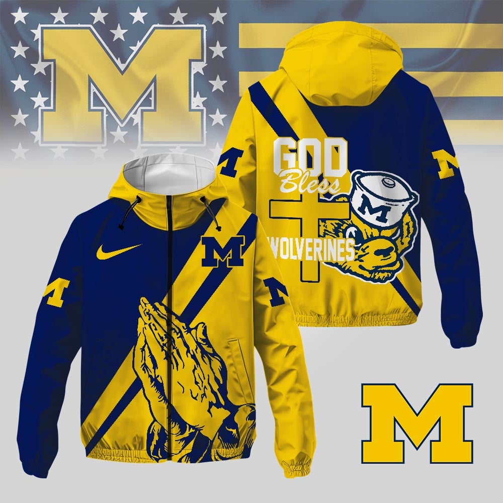 Michigan Wolverines | Premium NCAA God Bless My Team Windbreaker Jacket
