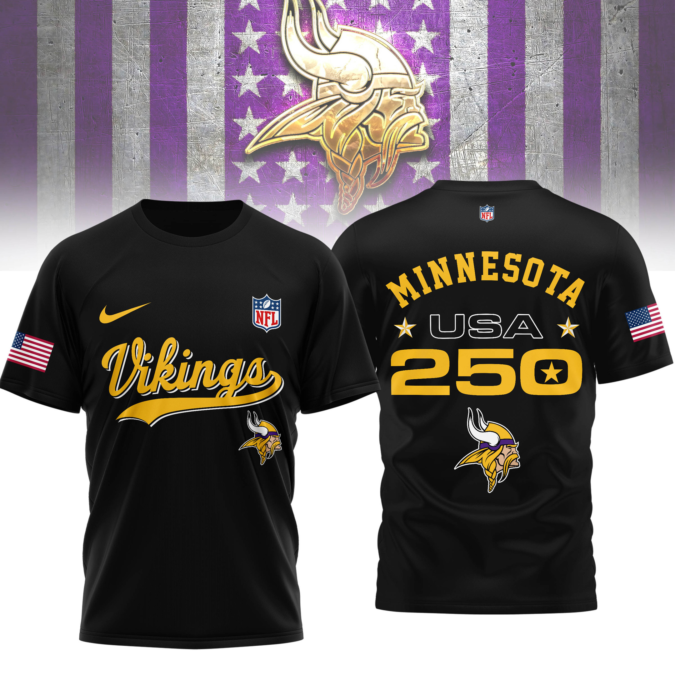 Minnesota Vikings | Premium NFL 250th USA 3D Shirt