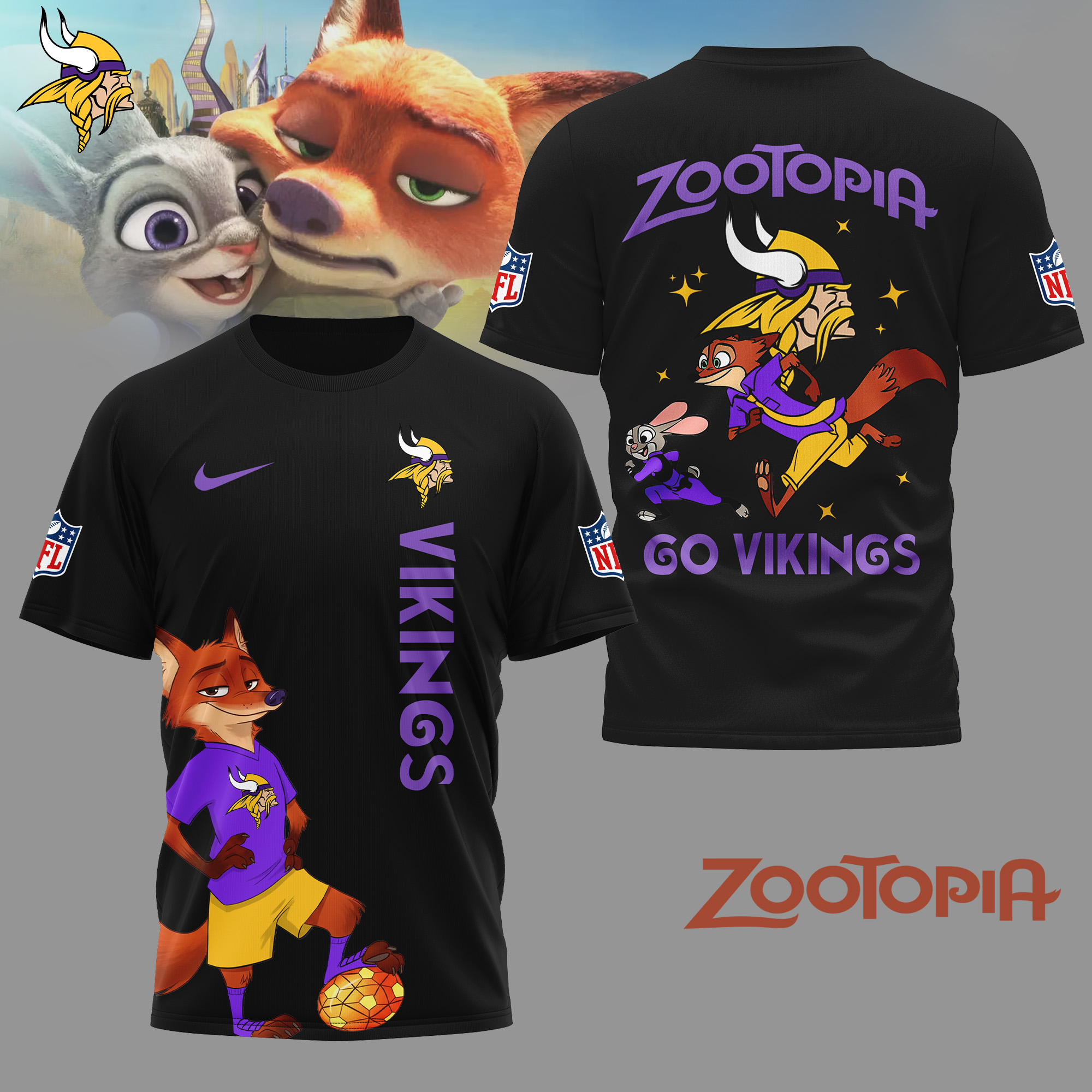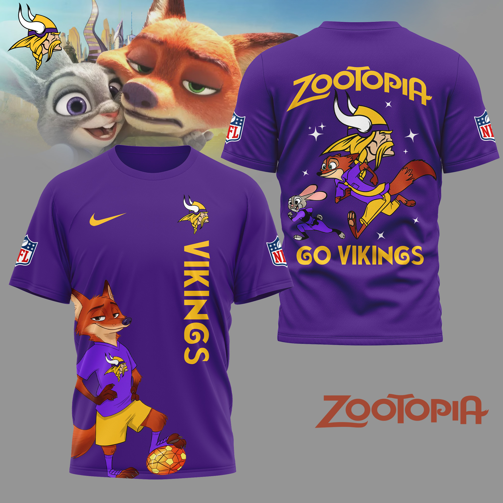 Minnesota Vikings | Premium NFL and Zootopia Fan 3D Shirt