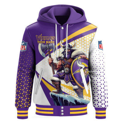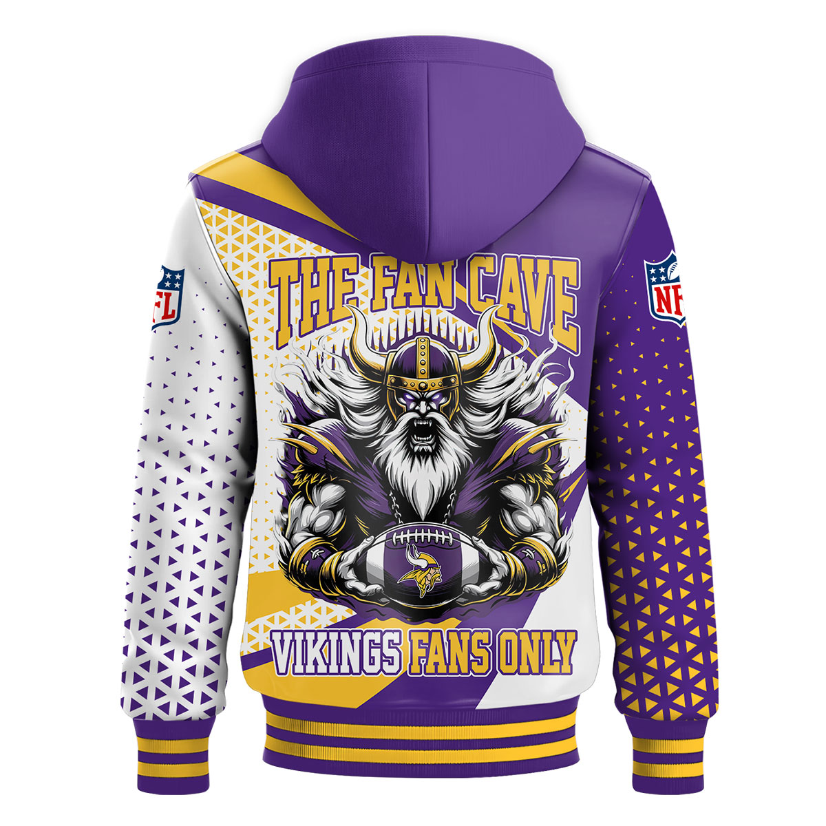 Categories: Minnesota Vikings, NFL, Premium NFL Fan Cave Hooded Baseball Jacket
