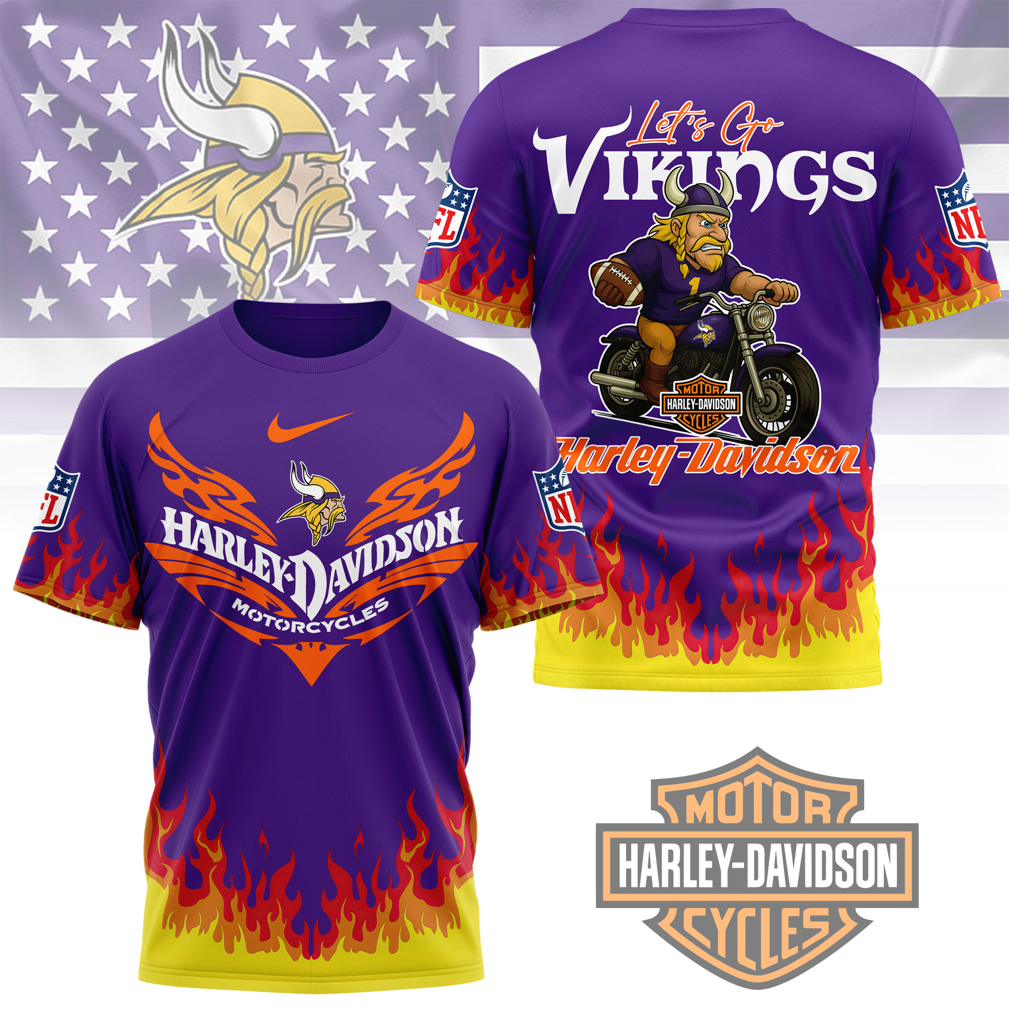 Minnesota Vikings | Premium NFL Harley Davidson Firewave 3D Shirt