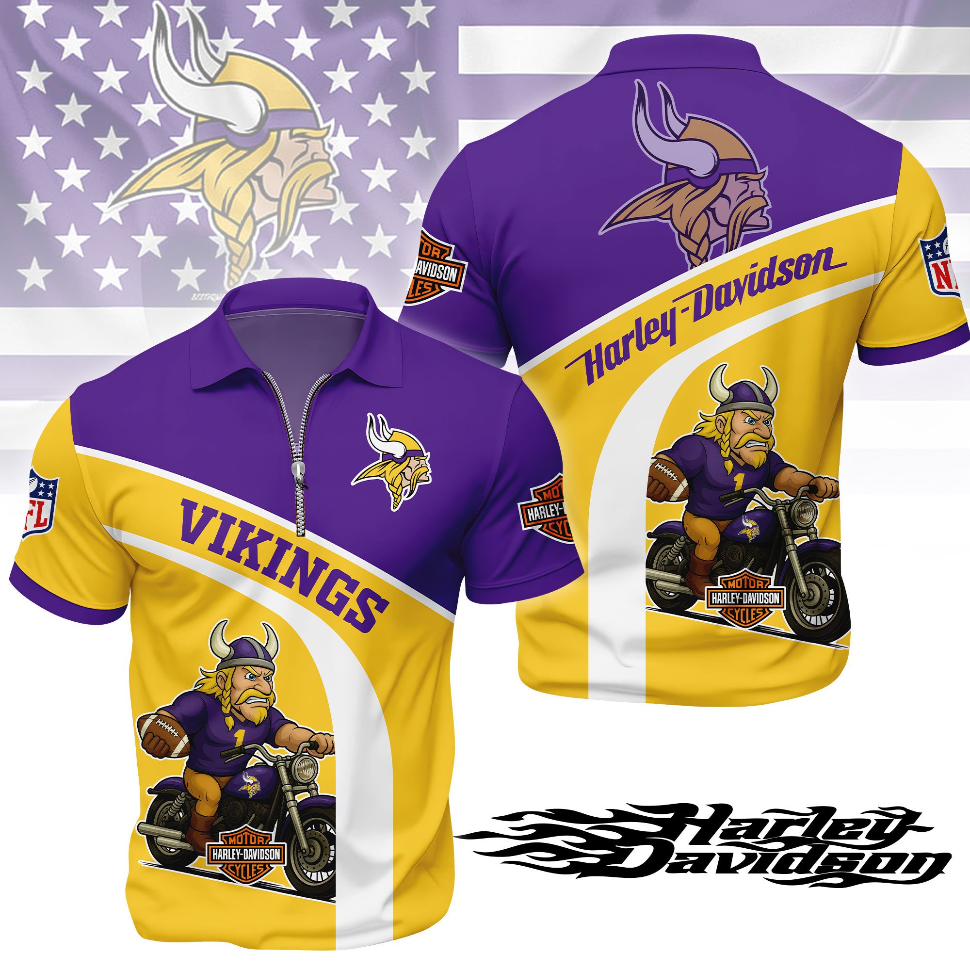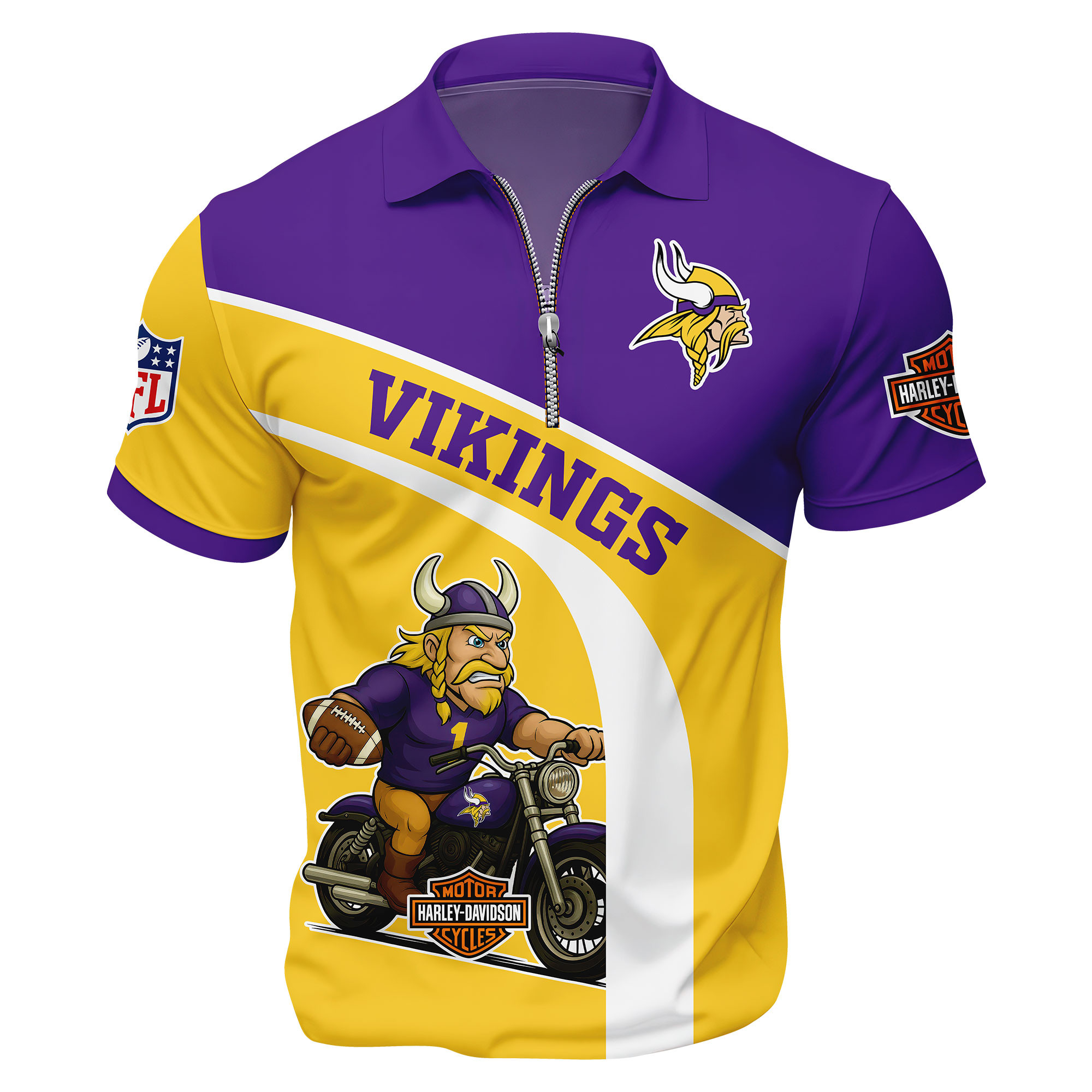 Minnesota Vikings | Premium NFL Harley-Davidson Polo With Zipper Shirt