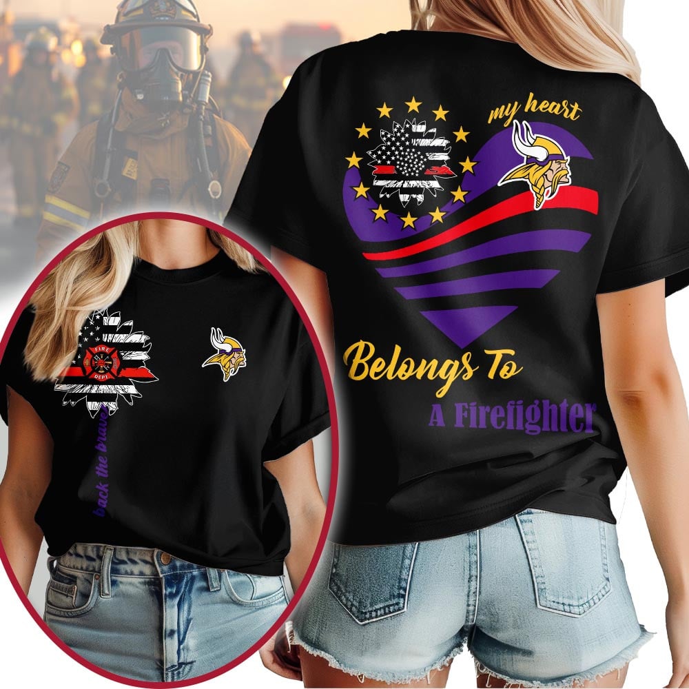 Minnesota Vikings | Premium NFL My Heart Belongs To A Firefighter T-shirt