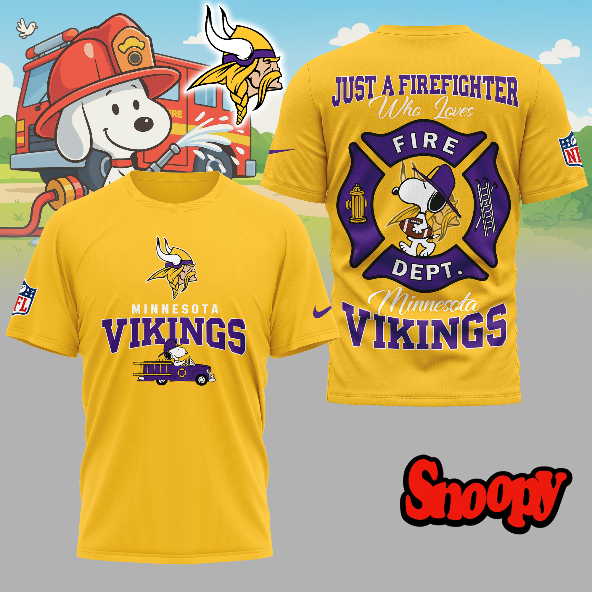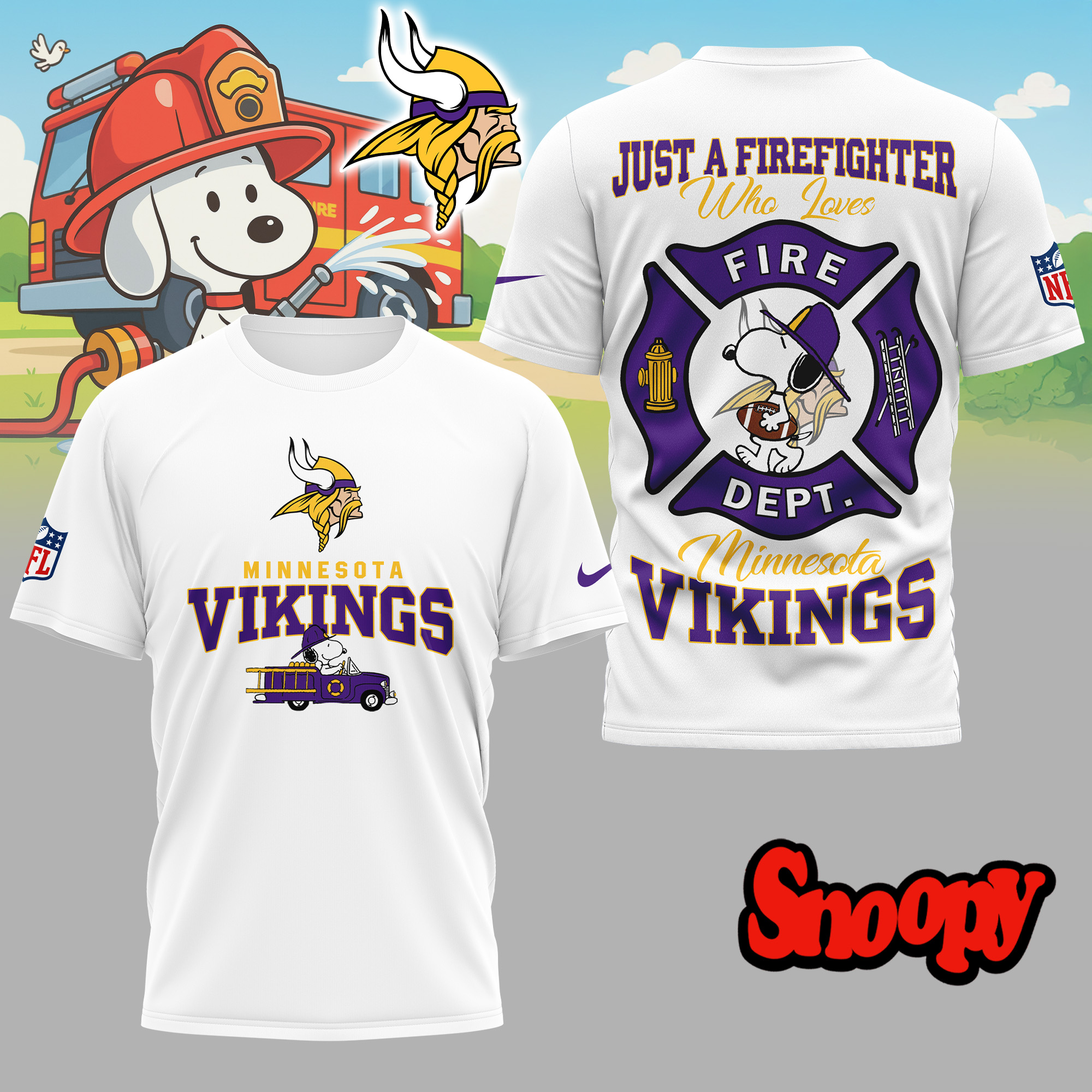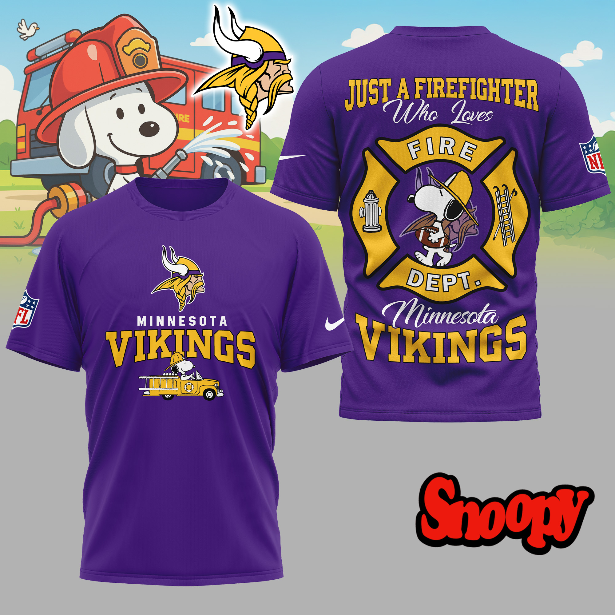 Minnesota Vikings | Premium NFL Snoopy Firefighter 3D Shirt