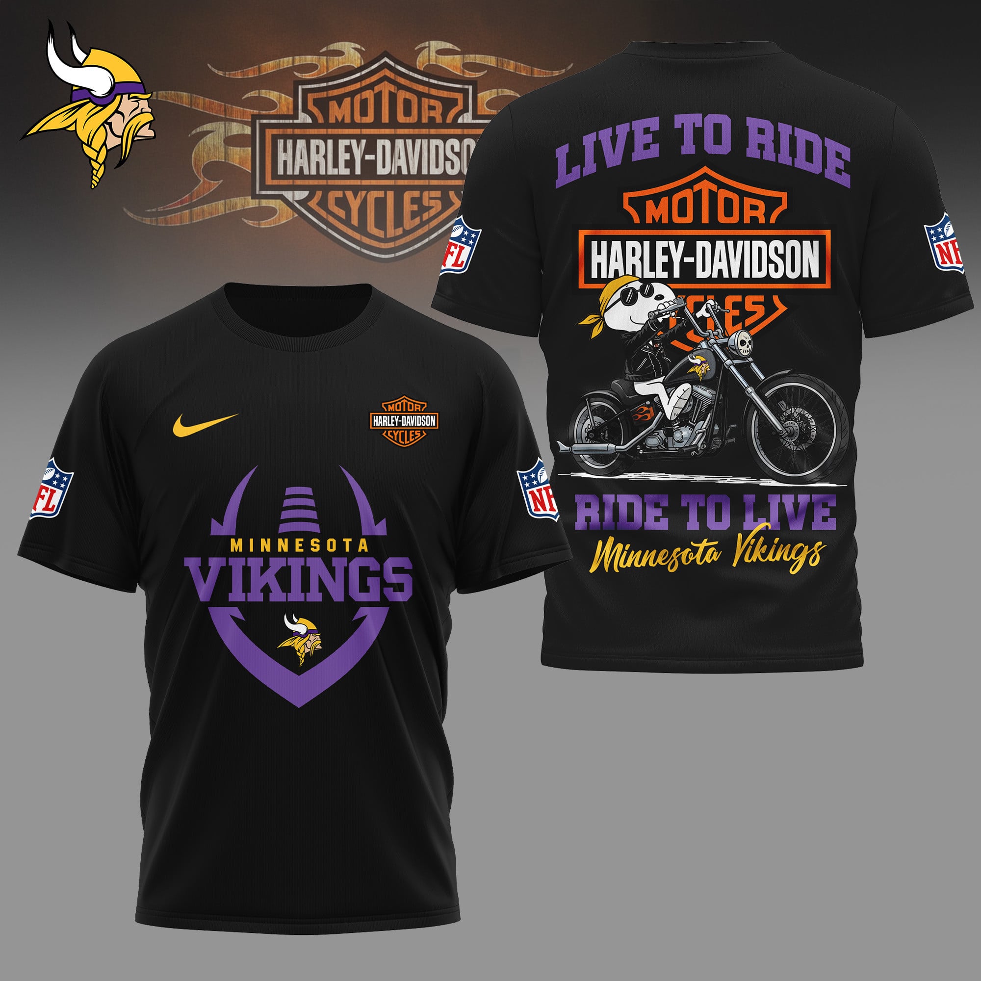 Minnesota Vikings | Premium NFL Snoopy Harley Davidson 3D Shirt