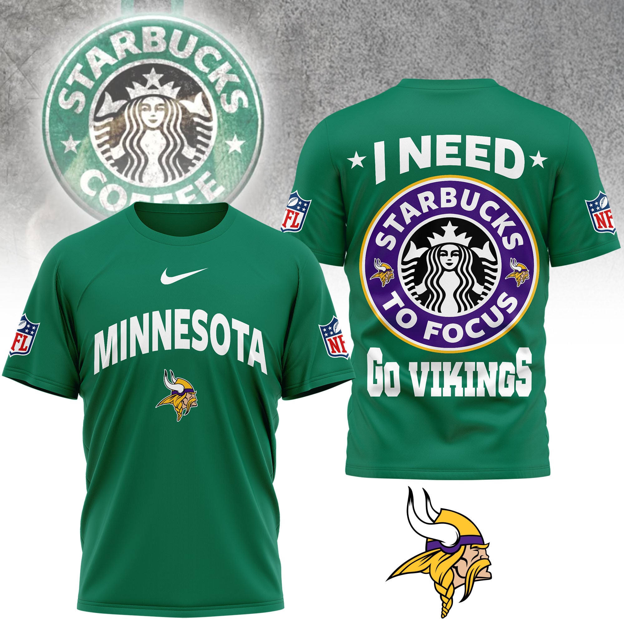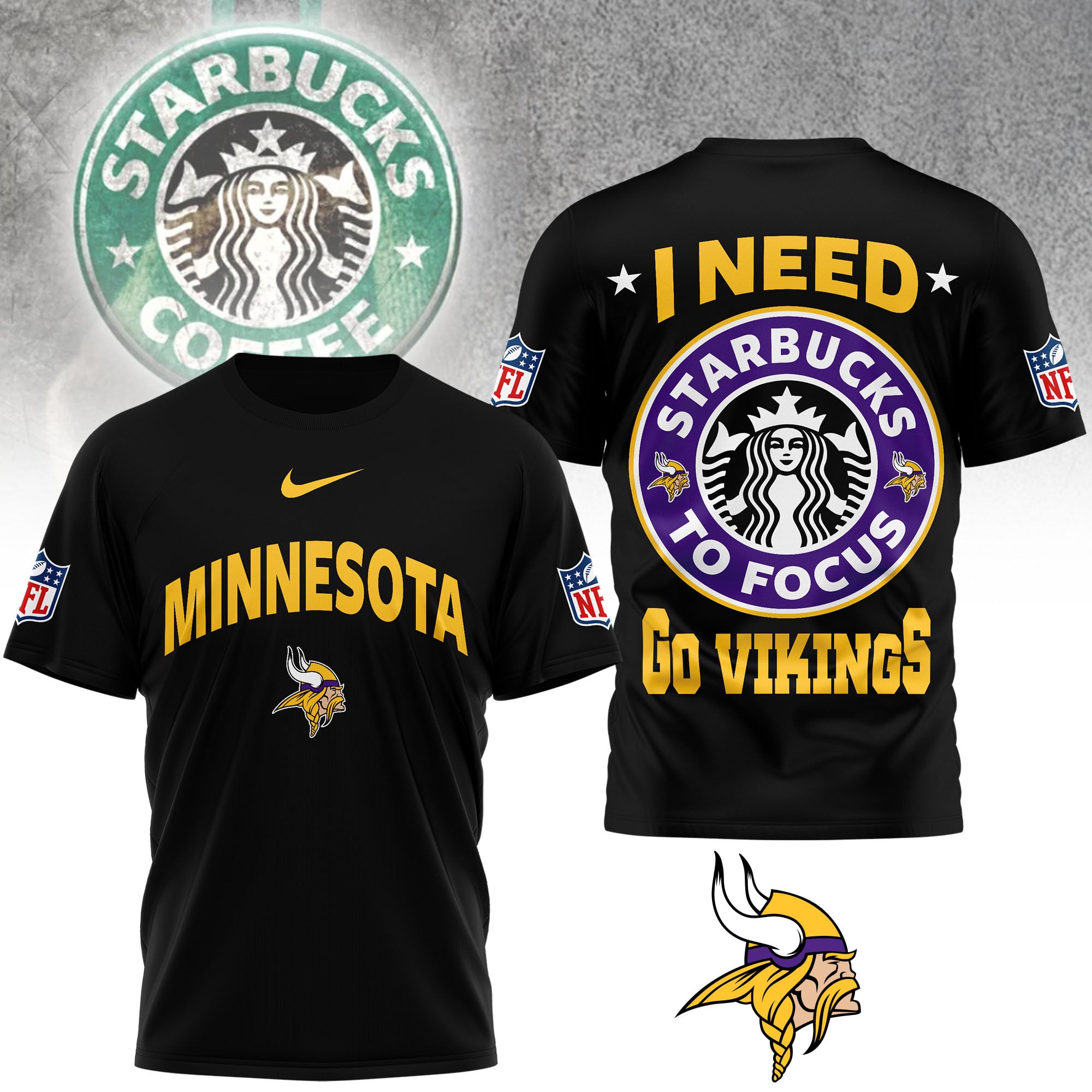 Minnesota Vikings | Premium NFL Starbucks Fan 3D Shirt