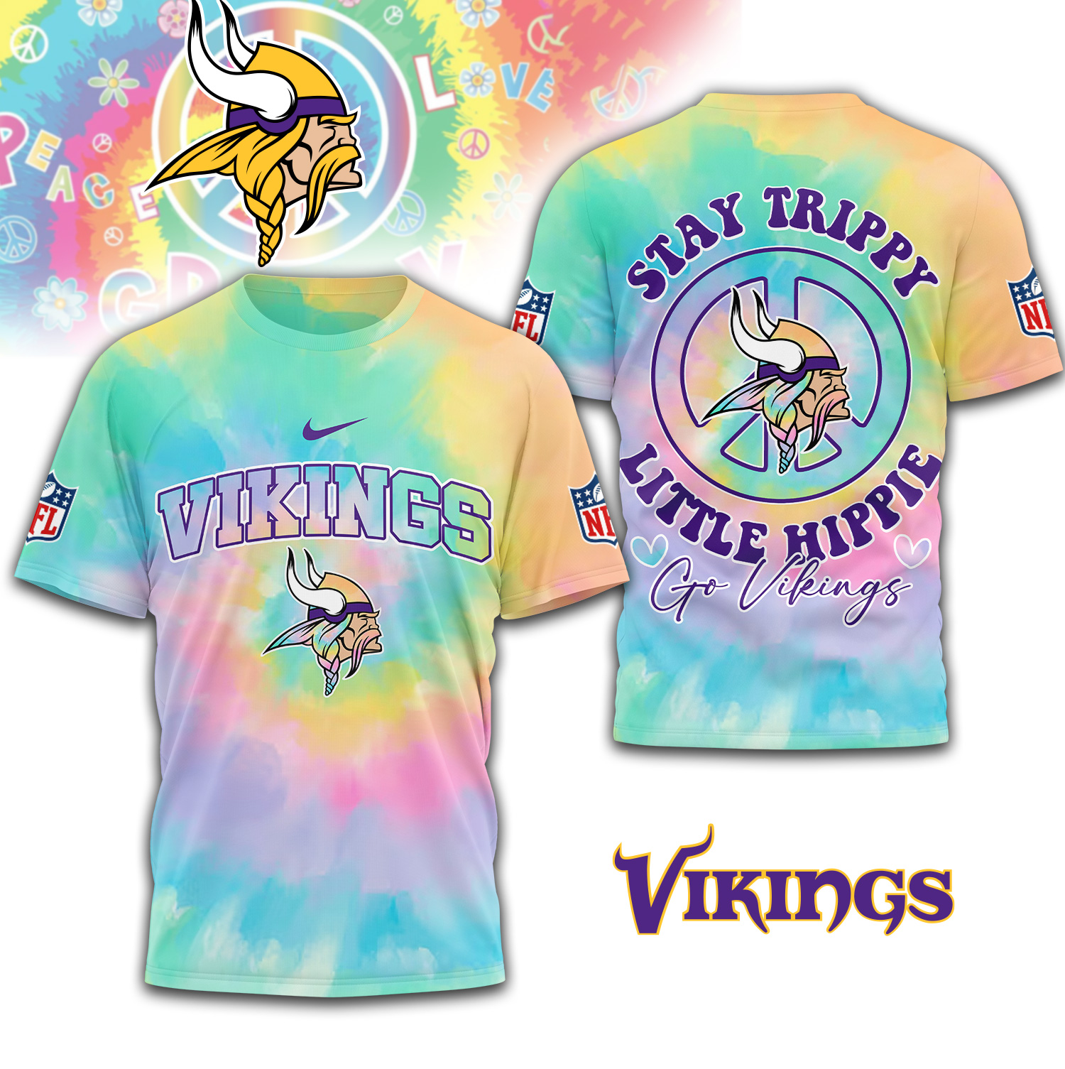 Minnesota Vikings | Premium NFL Stay Trippy Little Hippie 3D Shirt