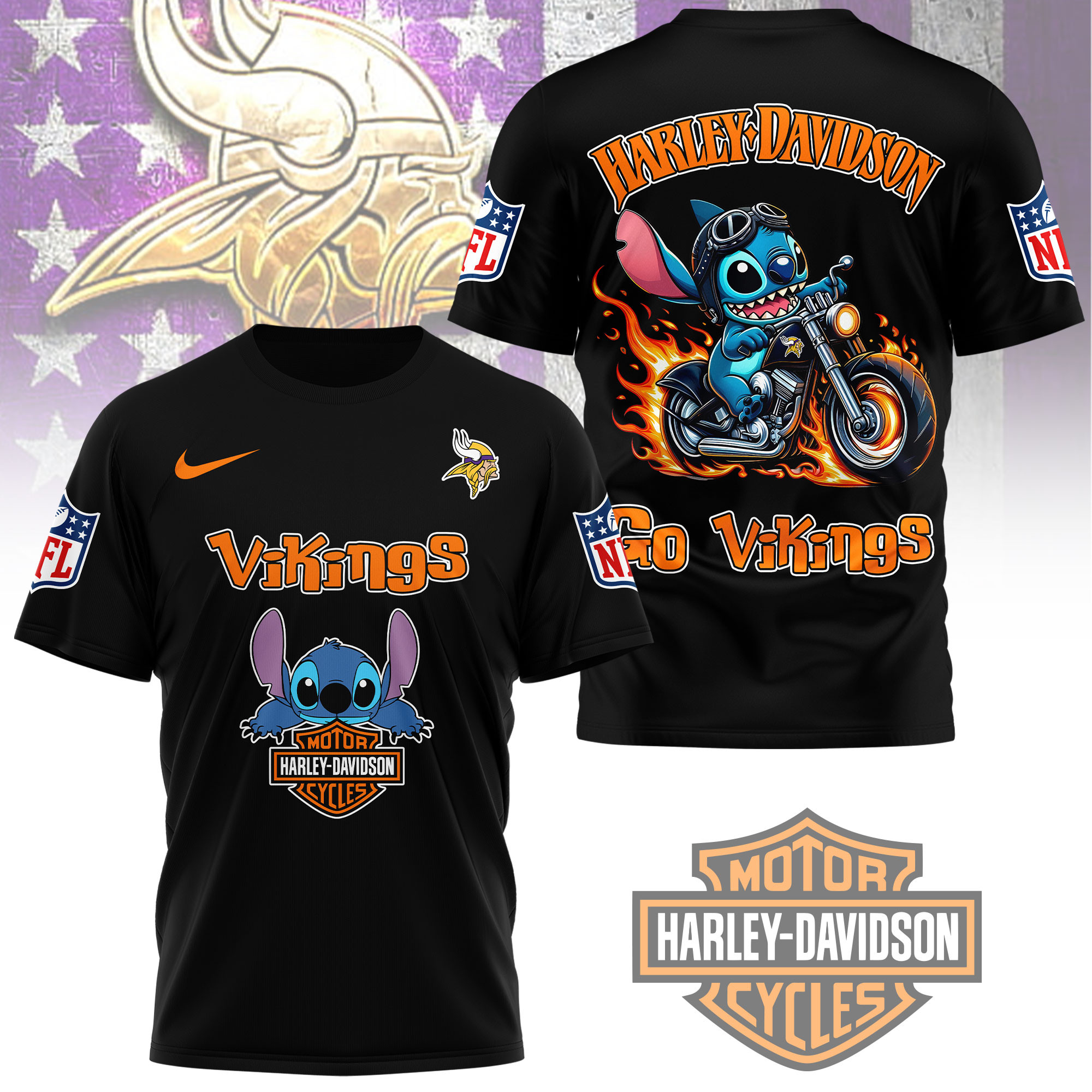 Minnesota Vikings | Premium NFL Stitch Harley Davidson 3D Shirt