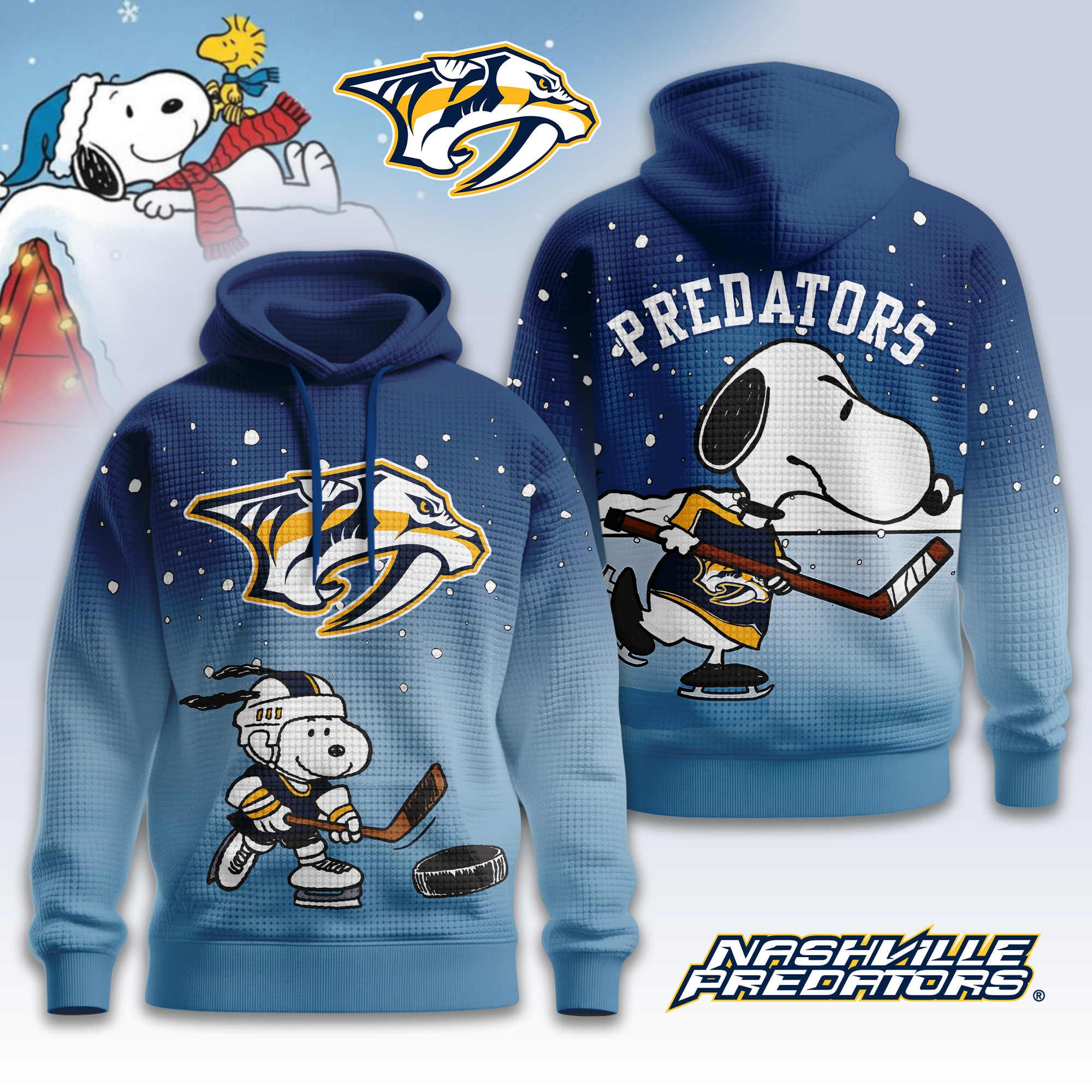 Nashville Predators | Premium NHL Snoopy Hockey 3D Waffle Hoodie