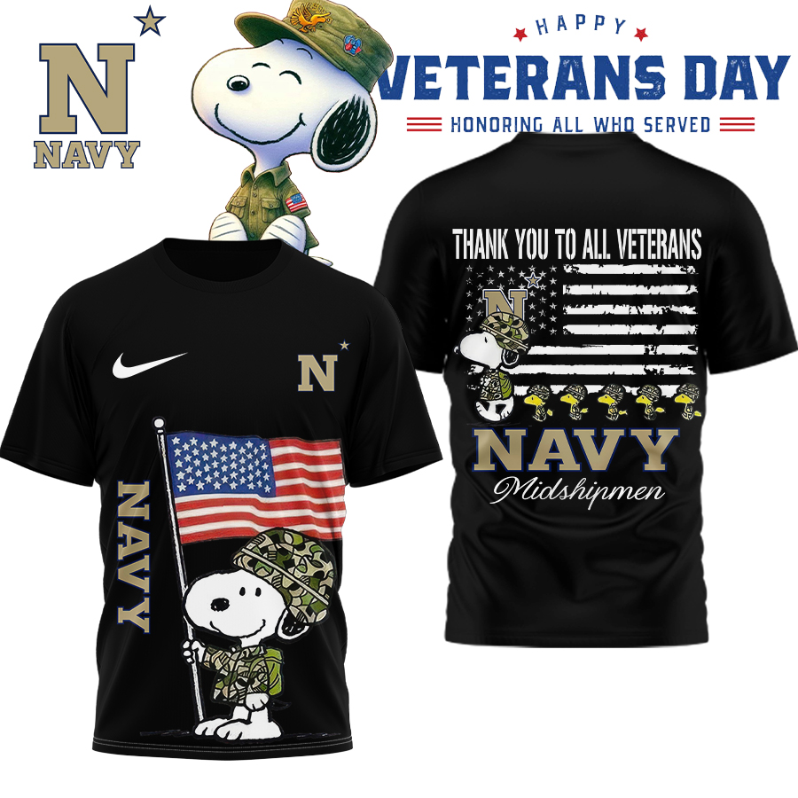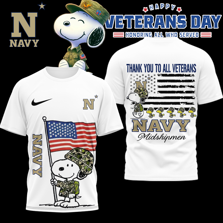Navy Midshipmen | Premium NCAA Snoopy Thank You Veterans 3D Shirt