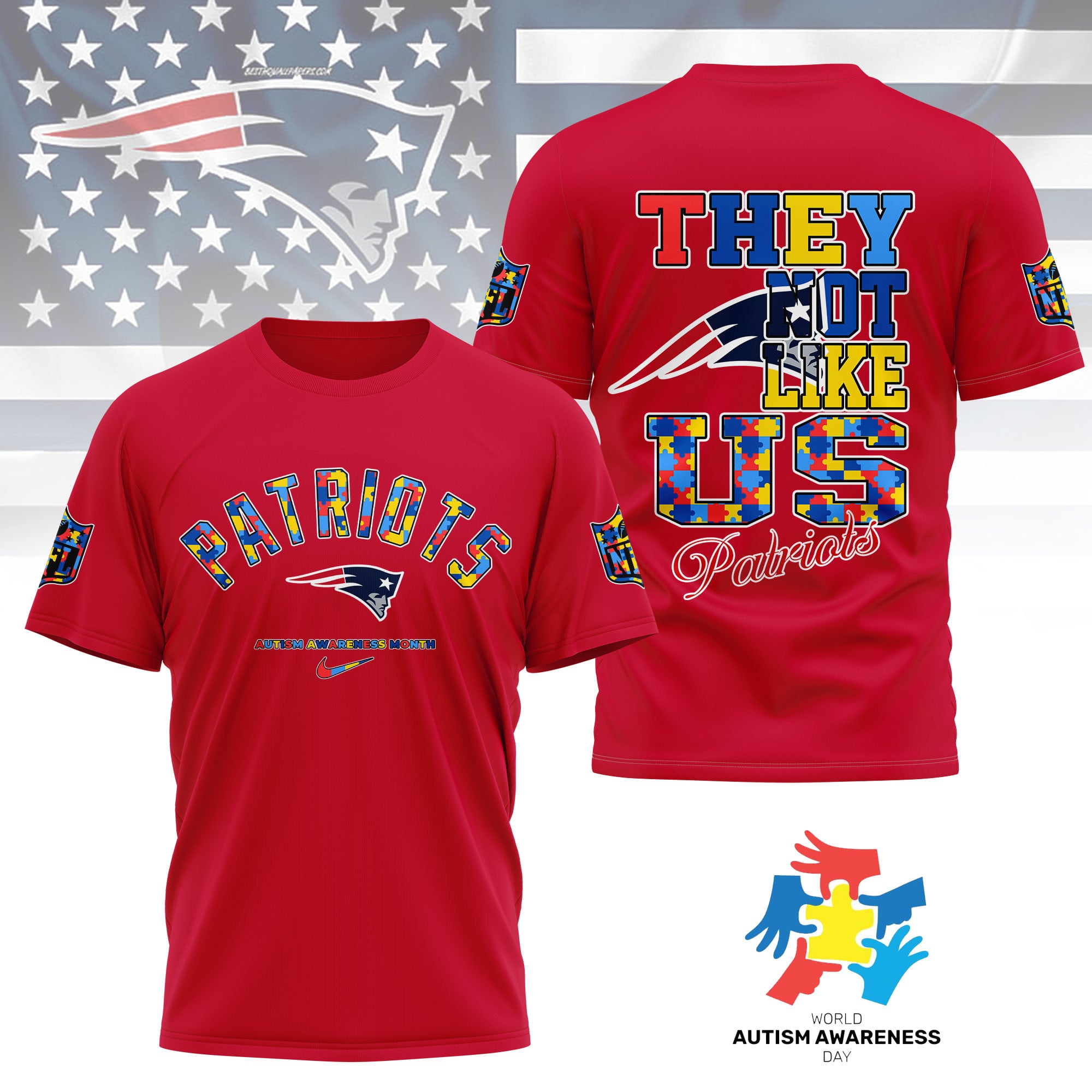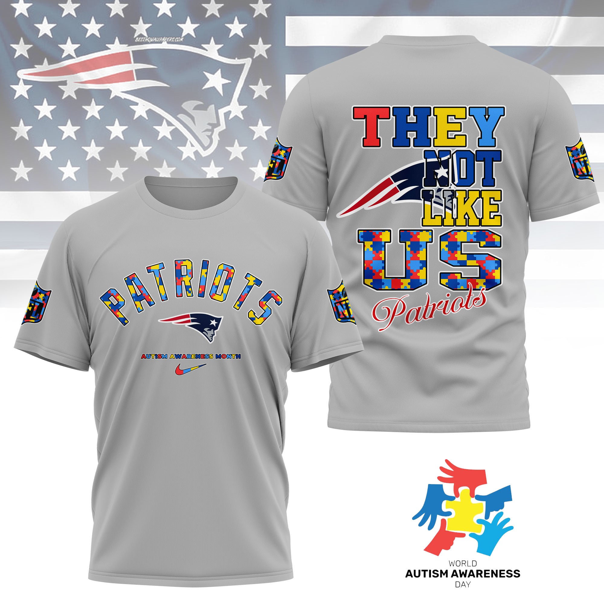 New England Patriots | Premium NFL Autism Awareness Month 3D Shirt