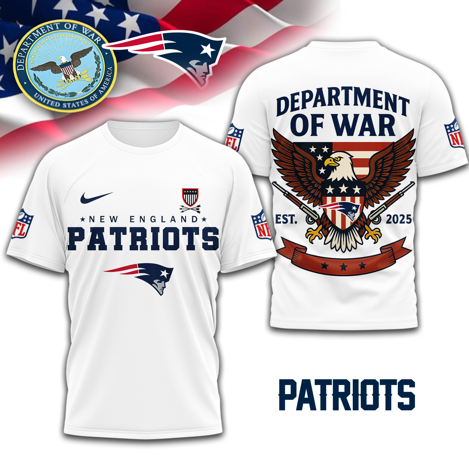New England Patriots | Premium NFL Department Of War 3D Shirt