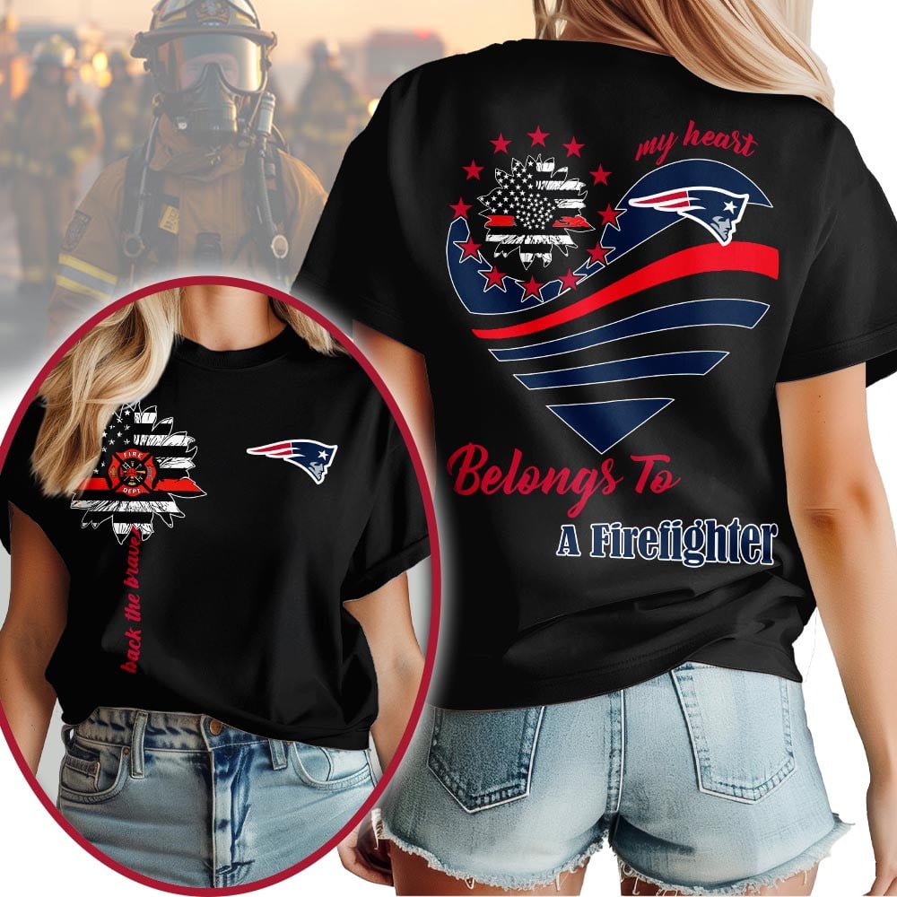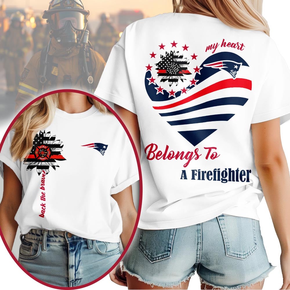 New England Patriots | Premium NFL My Heart Belongs To A Firefighter T-shirt