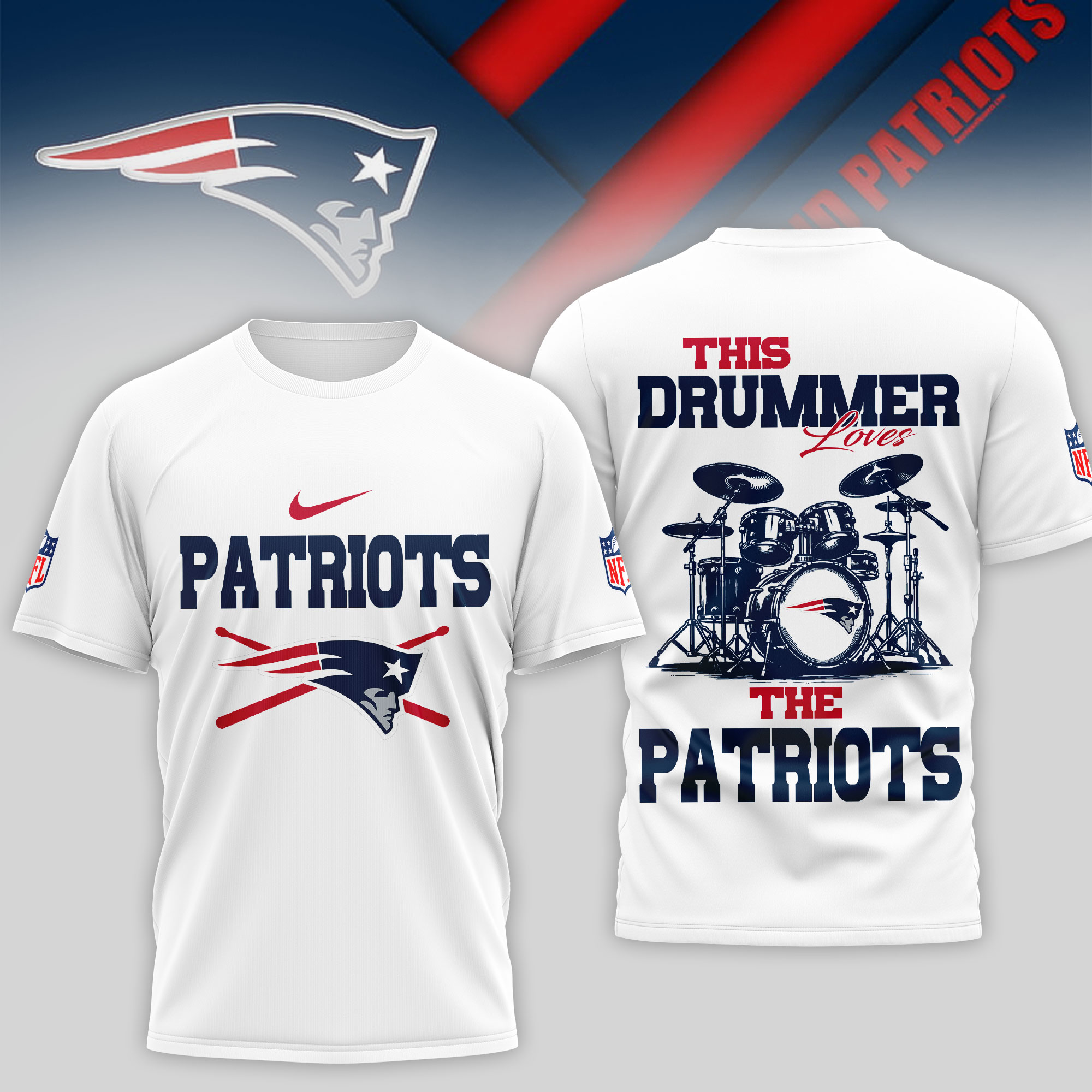 New England Patriots | Premium NFL This Drummer Loves Football 3D Shirt