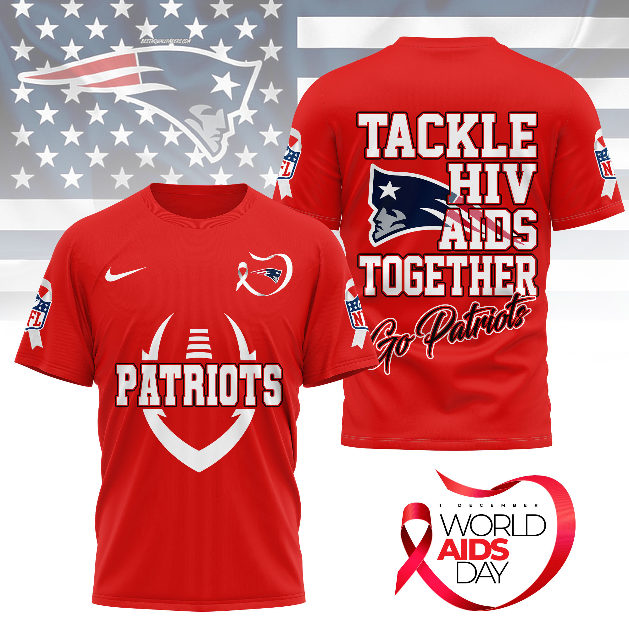 New England Patriots | Premium NFL World AIDS Day 3D Shirt