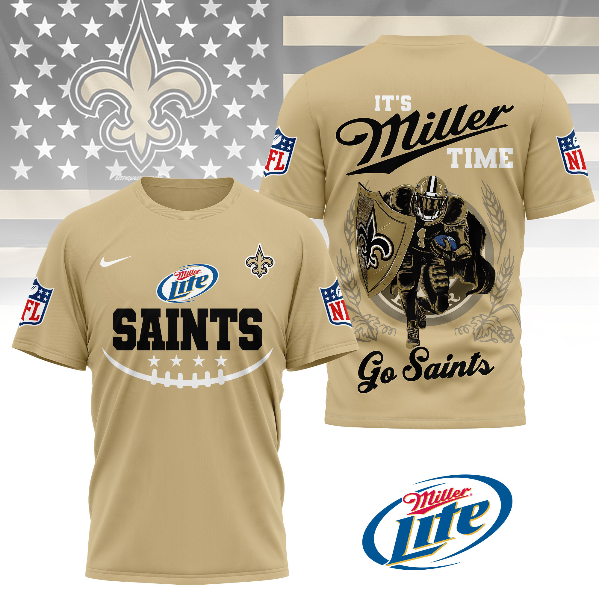 New Orleans Saints | Premium NFL Miller Lite 3D Shirt