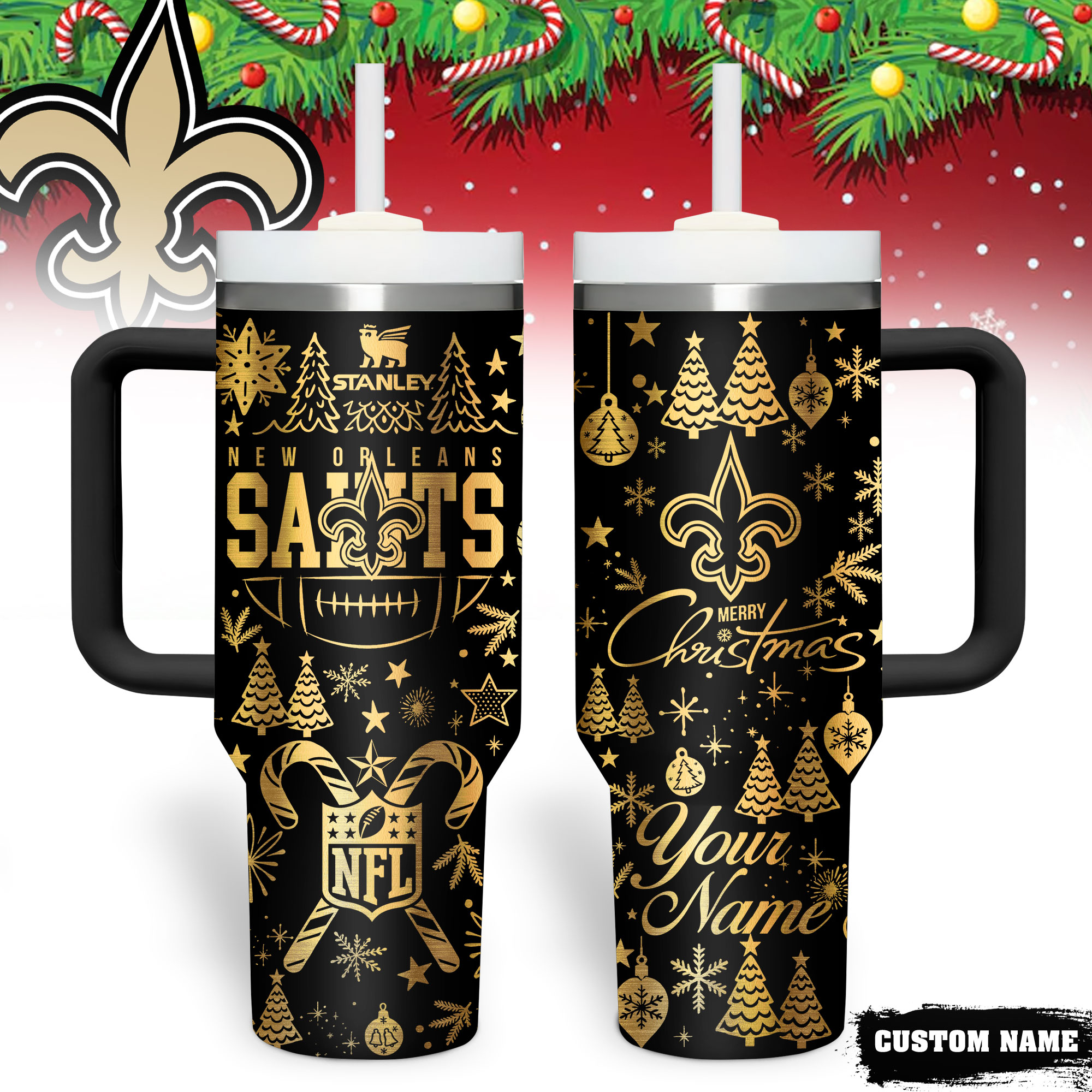New Orleans Saints | Premium NFL Personalized Holiday Gold Tumbler 40oz