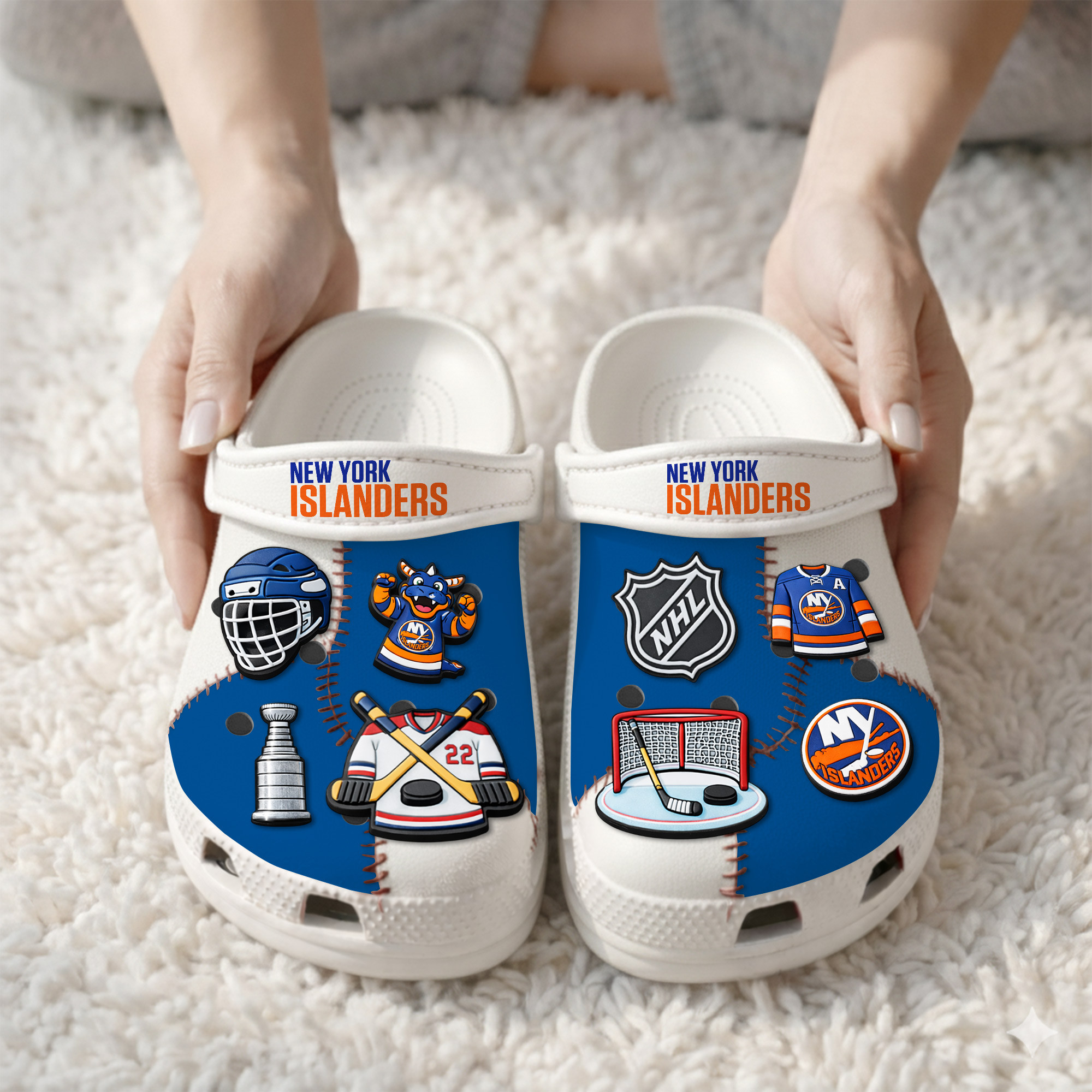 - This item: New York Islanders | PREMIUM NHL CLOGS WITH CHARMS Original price was: $119.99.$74.99Current price is: $74.99.
