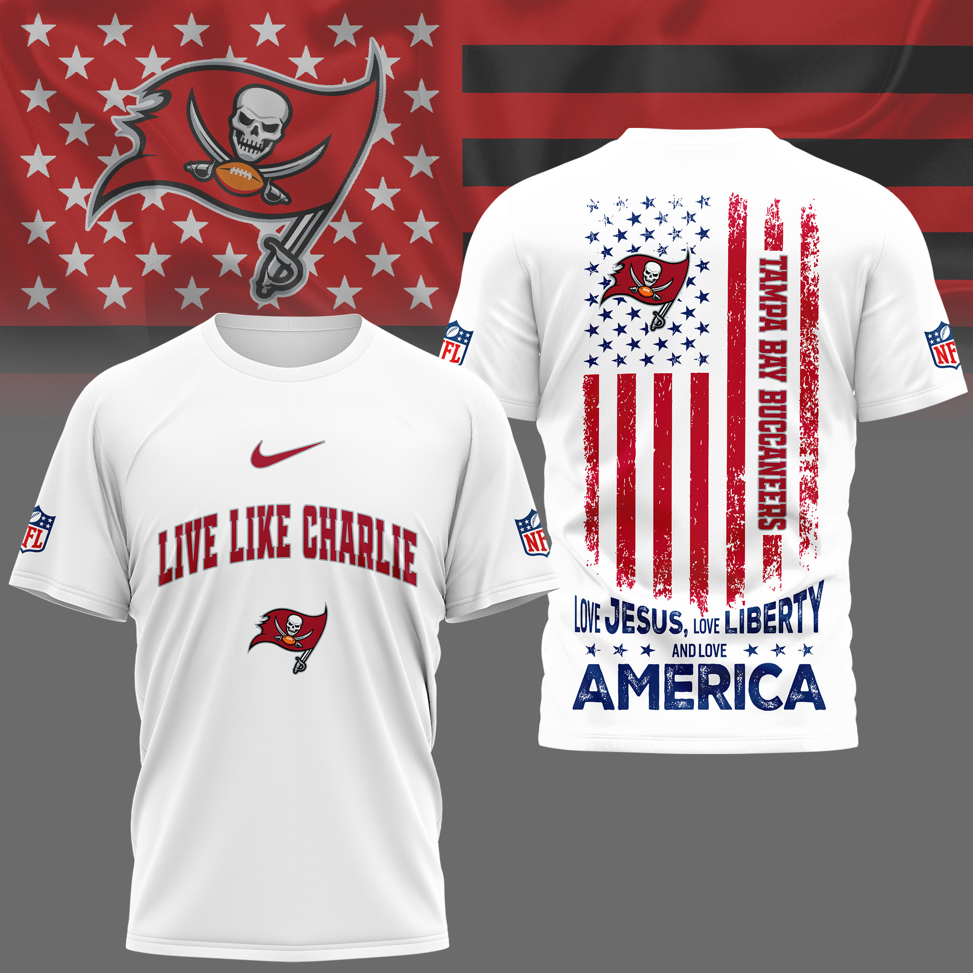Tampa Bay Buccaneers | Premium Live Like Charlie Patriotic 3D Shirt