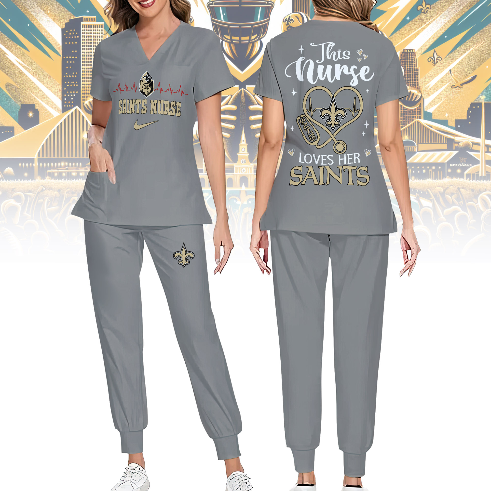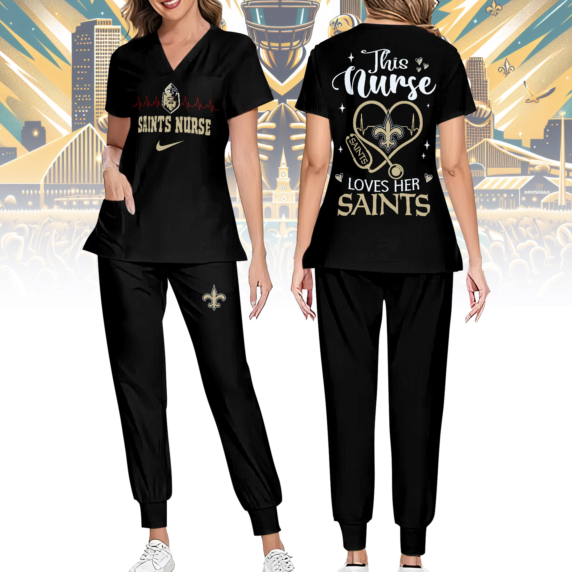 New Orleans Saints | Premium NFL Nurse Appreciation Stretch V-Neck Scrub Top And Jogger Pant