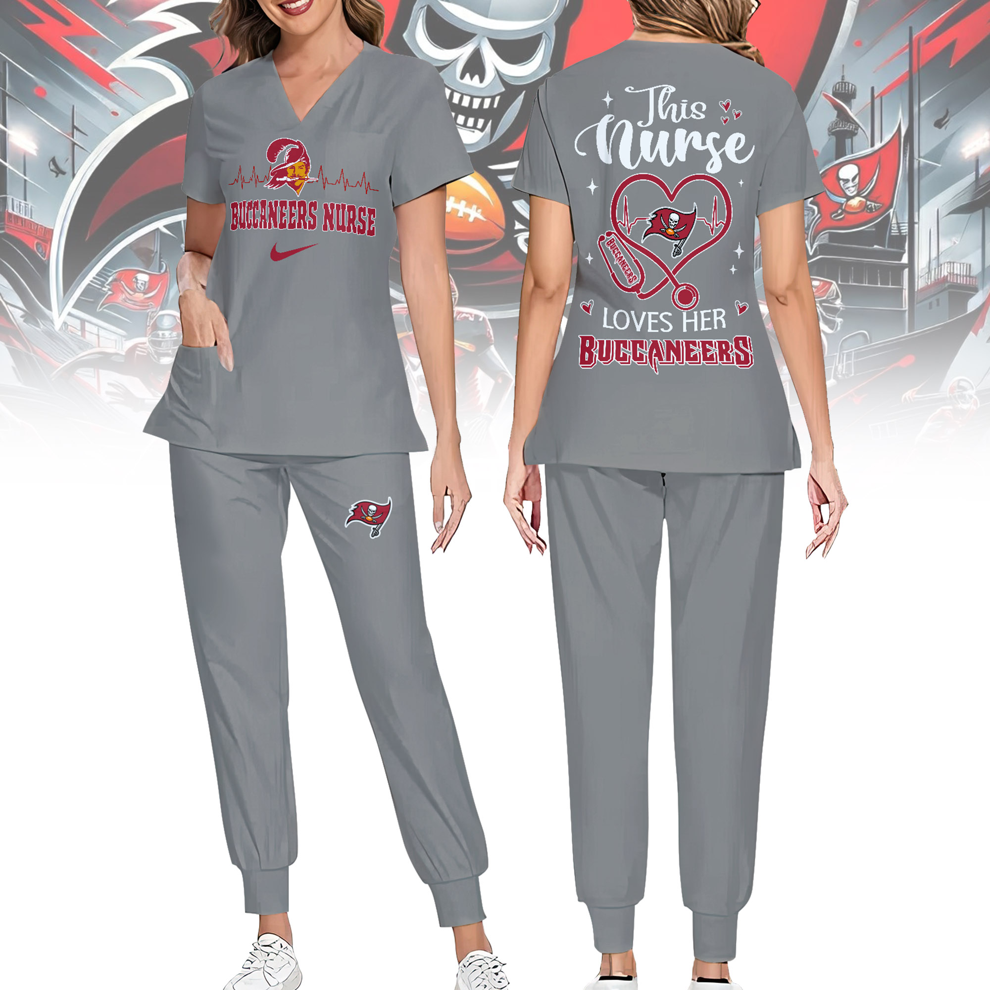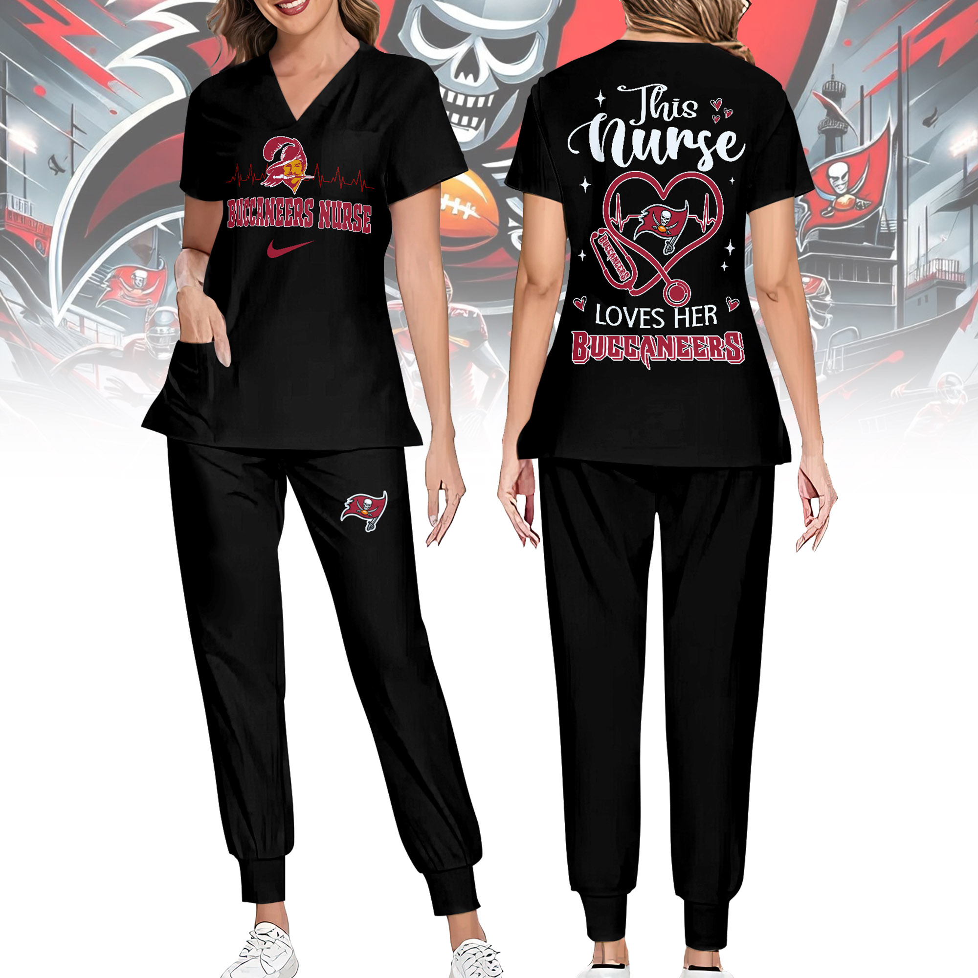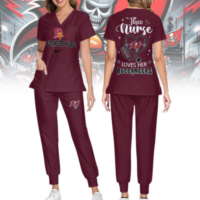 Tampa Bay Buccaneers | Premium NFL Nurse Appreciation Stretch V-Neck Scrub Top And Jogger Pant