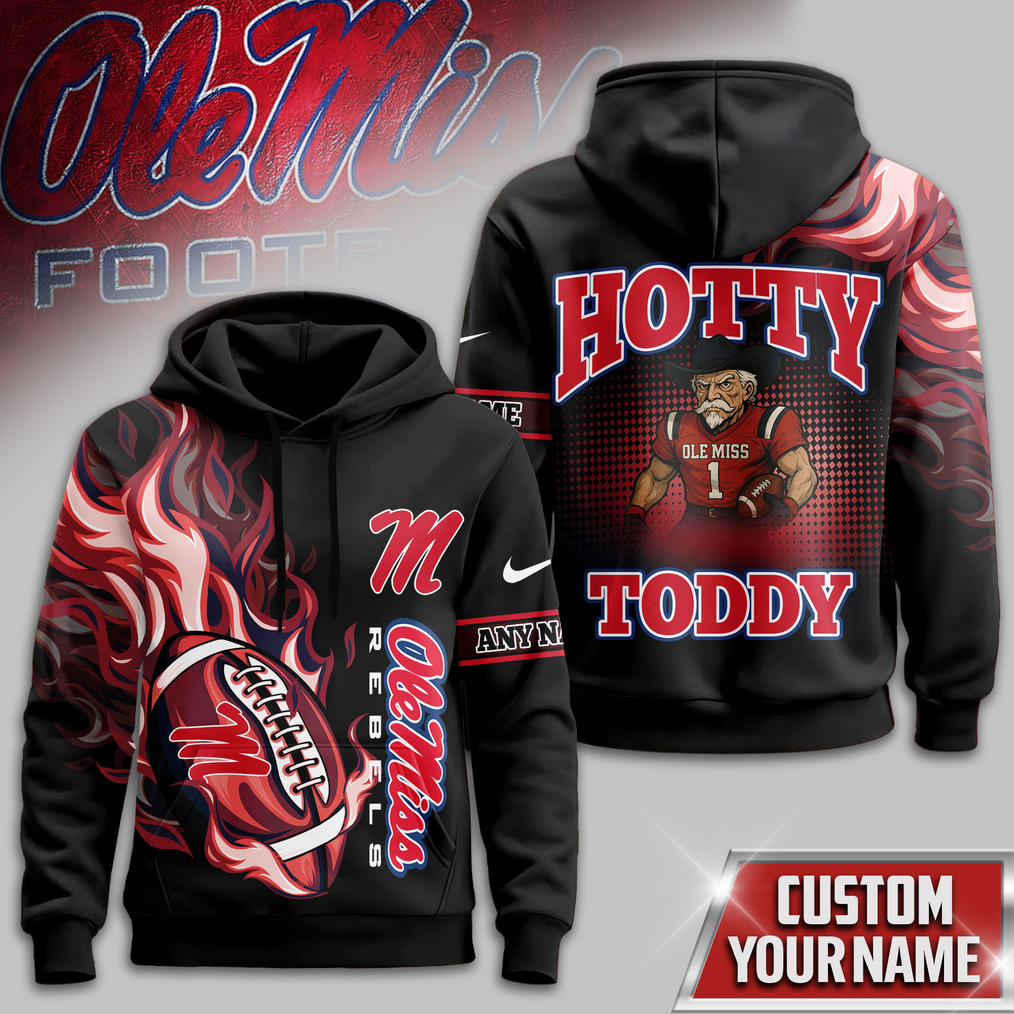 Ole Miss Rebels | Premium NCAA Victory Flame Personalized Hoodie